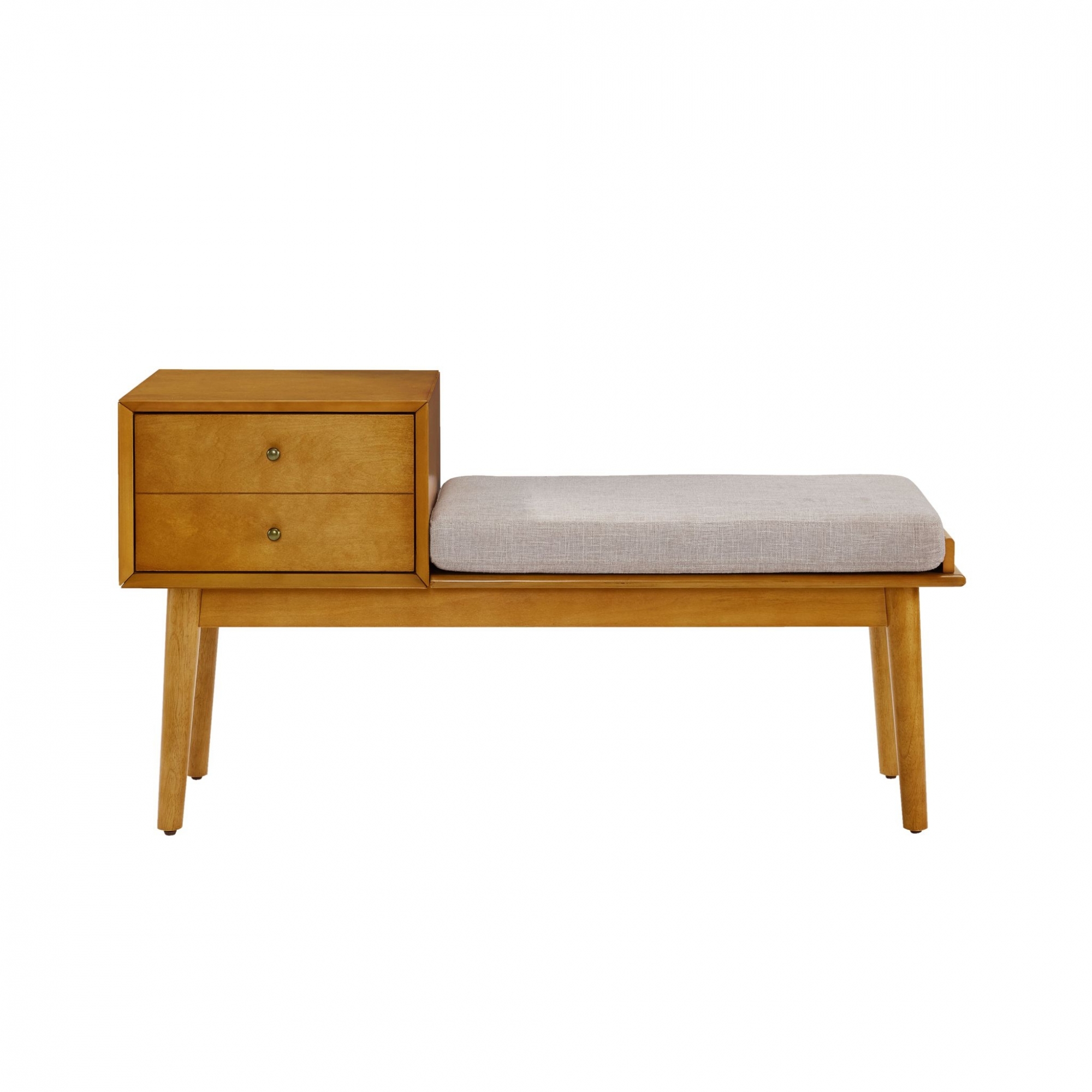Landon turntable bench made of solid wood. Landon is a durable bench that can hold any Crosley turntable (on our site). This bench features space for the record player and space for a comfortable cushion. Made by Crosley.