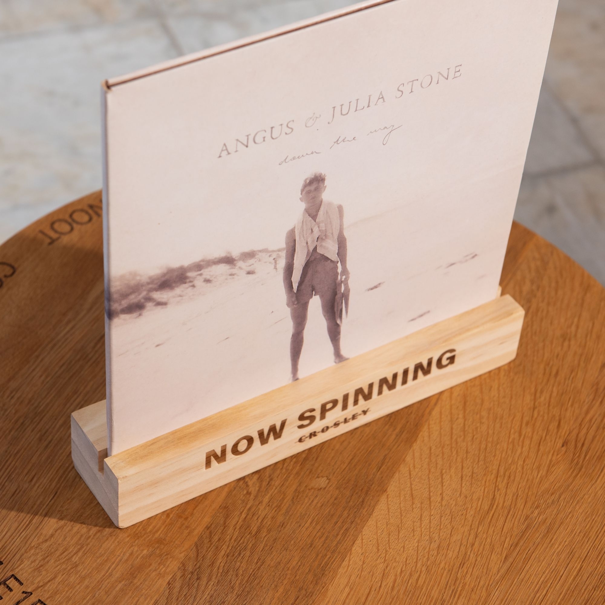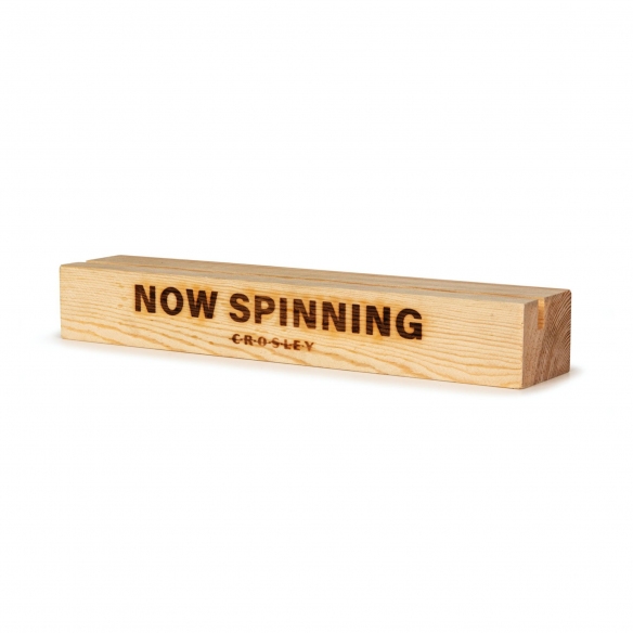 Now Spinning Stand record stand made of wood. It is comfortable to show your favourite record. It’s sturdy and branded with #nowspinning on the front so know know exactly what album you’re listening to. Made by Crosley.