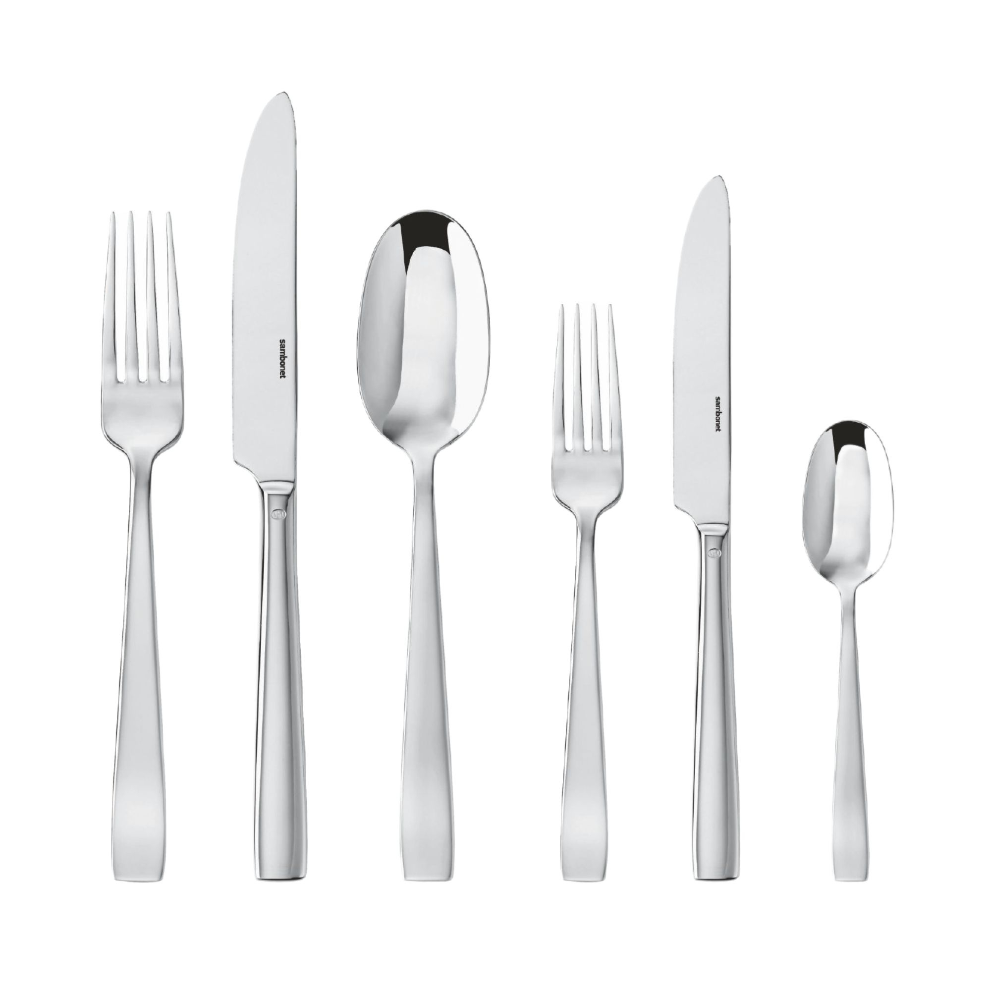 Each cutely has a monobloc handle, characteristics that gives lightness and handily. The Flat 72 pieces cutlery set is available in shiny steel, vintage steel or copper. A real jewel able to exalt every type of table set. Designed and built by Sambonet.