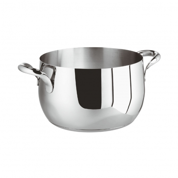Saucepot with two handles, with 28 cm in diameter, belonging to the Kikka collection, made of 18/10 stainless steel. Ideal for the preparation of long-cooking foods, such as soups, stews, sauces, and risottos, the Kikka saucepot is suitable for all types of cooking, including induction. The design is very simple, characterized by compact and regular lines, but at the same time out of the ordinary. The superior quality steel guarantees durability over time, as it is very resistant to scratches and wear. Designed and built by Sambonet.