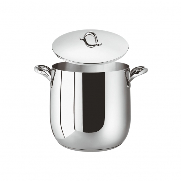 Stockpot with two handles and lid, with 16 cm of diameter, belonging to the Kikka collection, made of 18/10 stainless steel. Ideal for the preparation of long-cooking foods, such as pastas, stews, sauces, and so on, the Kikka sock pot is suitable for all types of cooking, including induction. The design is very simple, characterized by compact and regular lines, but at the same time out of the ordinary. The superior quality steel guarantees durability over time, as it is very resistant to scratches and wear. Designed and built by Sambonet.