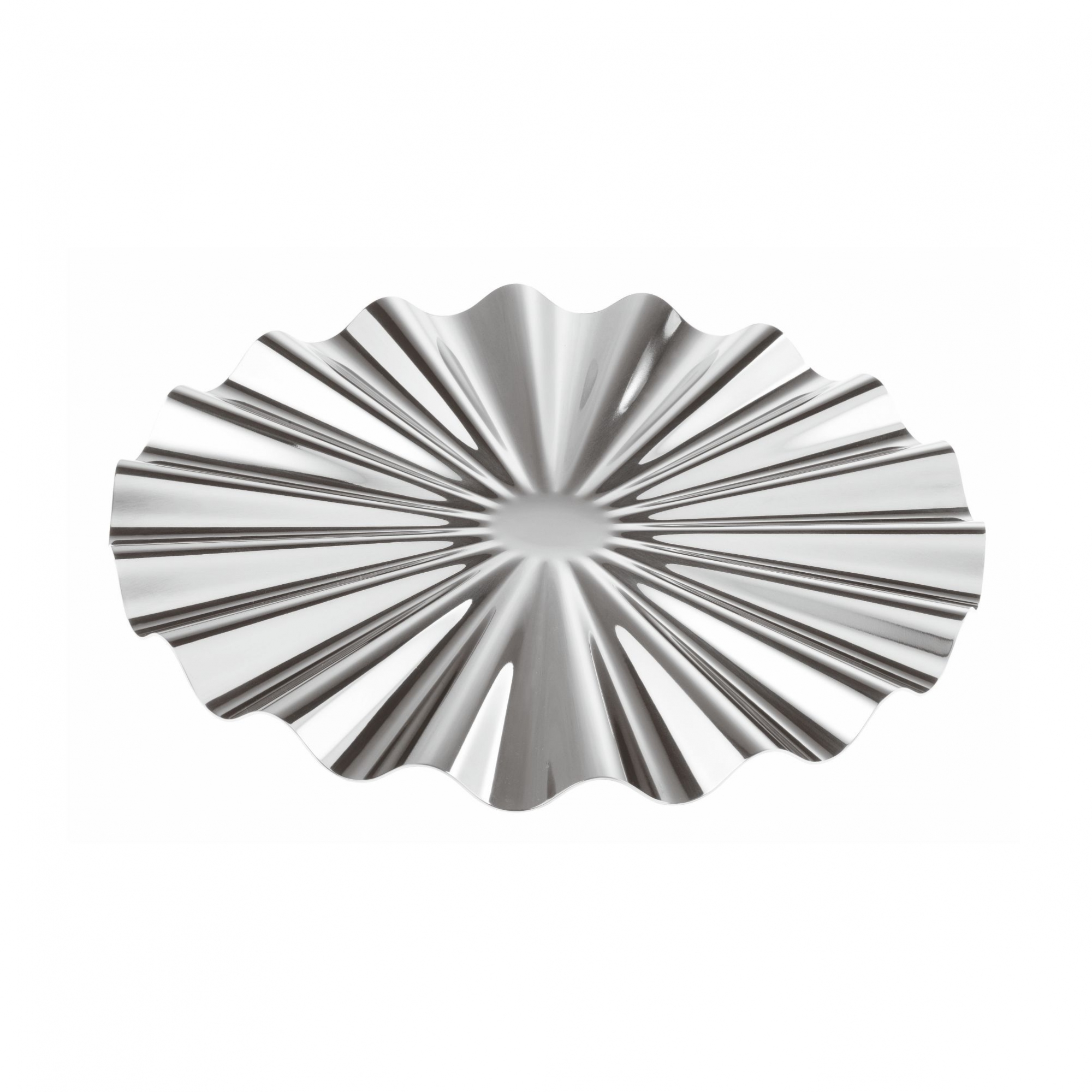 Saucers with a diameter of 31 cm, belonging to the Kyma collection, made of 18/10 stainless steel and PVD. Available in 4 colours, with the hi-tech steel, characterized by a sinusoidal line, represented by the stainless steel tube, runs through the perimeter of the objects, softly framing its profiles. A fascinating dialogue between an industrial design object and craftsmanship excellence. Designed by Serena Confalonieri for Sambonet.