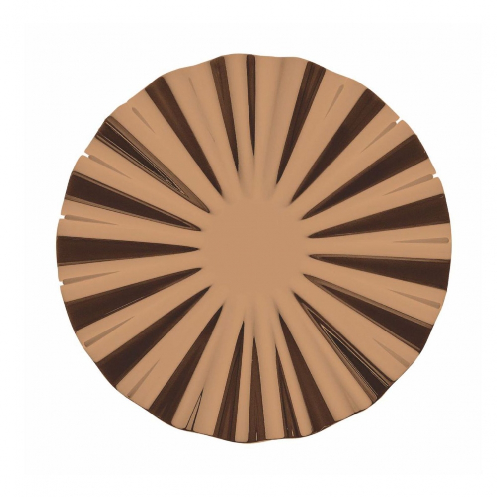 Saucers with a diameter of 33 cm, belonging to the Kyma collection, made of 18/10 stainless steel and PVD. Available in 4 colours, with the hi-tech steel, characterized by a sinusoidal line, represented by the stainless steel tube, runs through the perimeter of the objects, softly framing its profiles. A fascinating dialogue between an industrial design object and craftsmanship excellence. Designed by Serena Confalonieri for Sambonet.