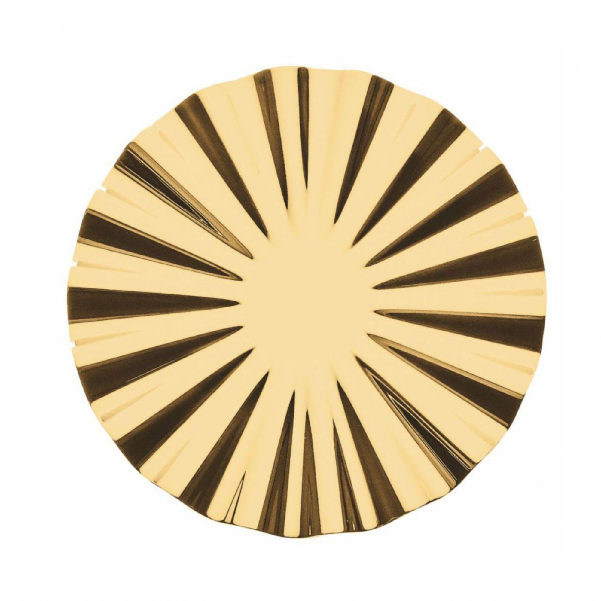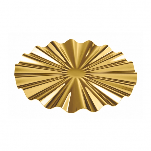 Saucers with a diameter of 33 cm, belonging to the Kyma collection, made of 18/10 stainless steel and PVD. Available in 4 colours, with the hi-tech steel, characterized by a sinusoidal line, represented by the stainless steel tube, runs through the perimeter of the objects, softly framing its profiles. A fascinating dialogue between an industrial design object and craftsmanship excellence. Designed by Serena Confalonieri for Sambonet.