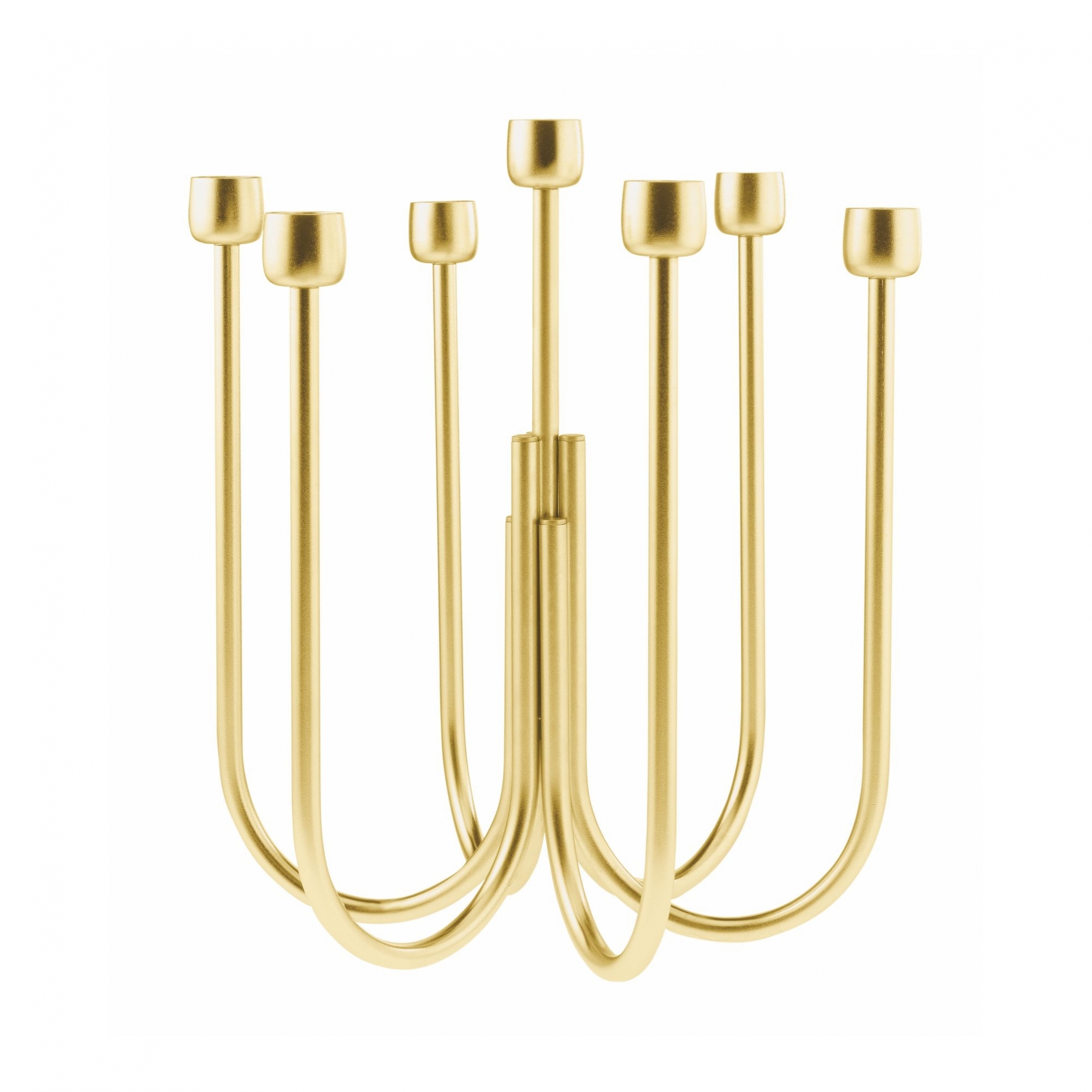 Candelabra, belonging to the Kyma collection, made of 18/10 stainless steel. Available in 4 colours, also the silver finish one, characterized by a sinusoidal line, represented by the stainless steel tube, runs through the perimeter of the objects, softly framing its profiles. A fascinating dialogue between an industrial design object and craftsmanship excellence. Ideal for 7 lights, it is dynamic and vibrant chandelier that brings style and pleasant shades of colours at home. Designed by Serena Confalonieri for Sambonet.