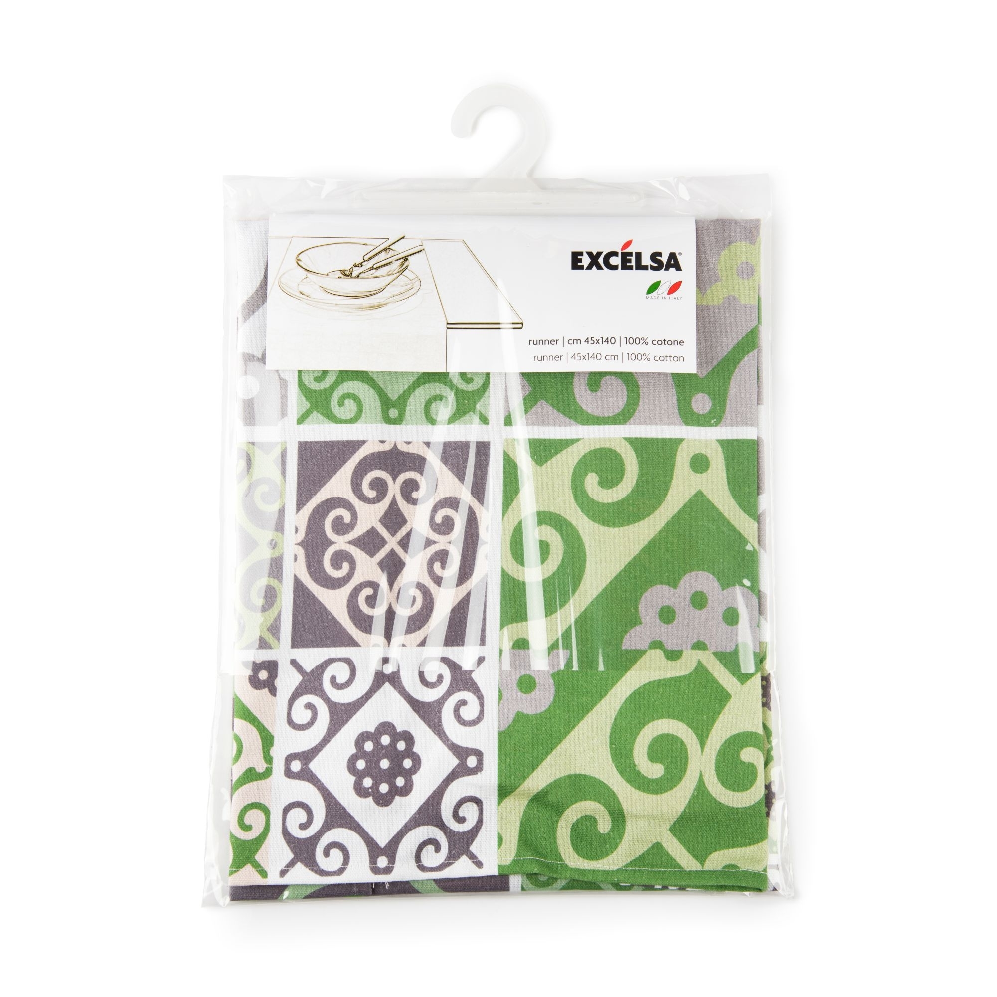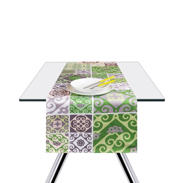 Runner 45x140 cm, belonging to the Maiolica collection, made of 100% cotton. Available in 3 elegant and delicate colour finishes, this splendid runner will allow you to create a slap-up table. Combine it with the other elements of the Majolica collection, to obtain a suggestive composition, in full medieval style! Designed and projected by Excelsa.