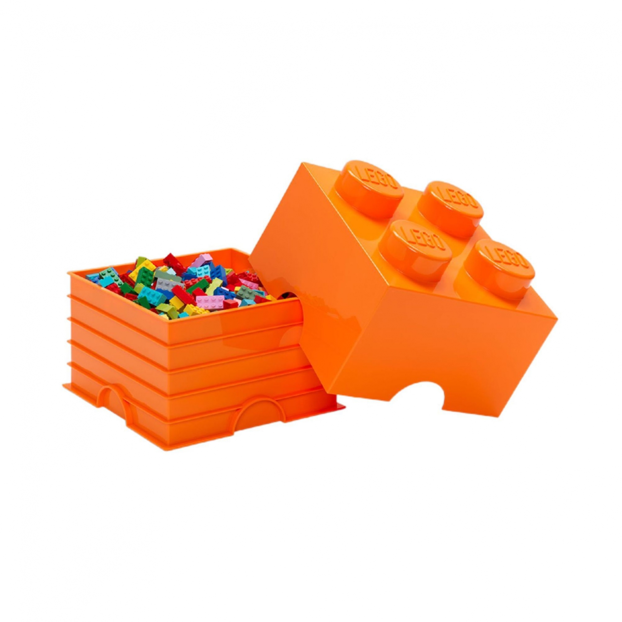 Brick 4 container, made of colored plastic. Available in 10 color finishes, this cool accessory is inspired by iconic Lego® bricks, and is perfect for keeping your favorite toys in order! It can be combined with other container-bricks, thanks to the upper joint; you can create colorful compositions, perfect for always keeping in order and storing Lego® bricks and minifigures. A perfect gift idea for all fans! Designed and made by Lego®.