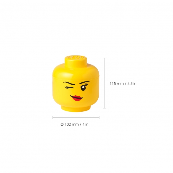Head Winky Girl container, made of ABS plastic. Available in 2 different sizes (small and mini), this beautiful container can be used to store iconic Lego® bricks, other toys or even fruit! The design is inspired by the head of the classic Lego® mini-figure in a “winking” female version, and is ready to enrich your environment with sympathy and playfulness! Designed and made by Lego®.