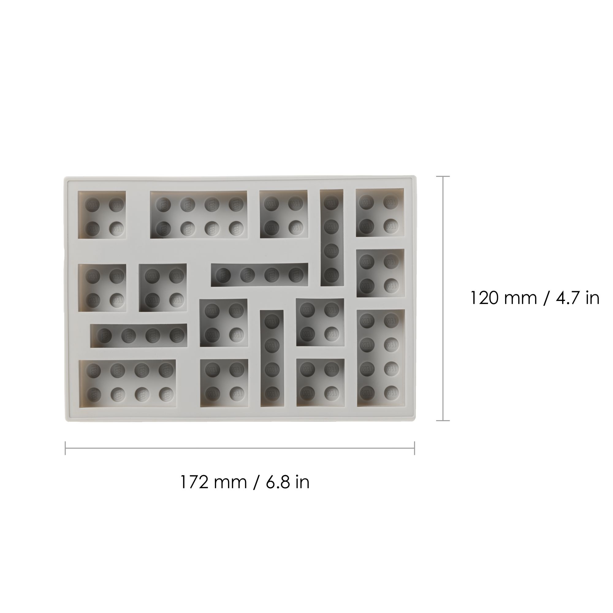 17x12 cm Ice Cube ice try made of silicone. Available in grey, this try allows you to create fantastic ice cubes, brick-shaped. The design inspires by Lego® world and the different shapes will allow you to create different sizes of Lego® bricks. An accessory with which will fall in love the Lego® lovers!