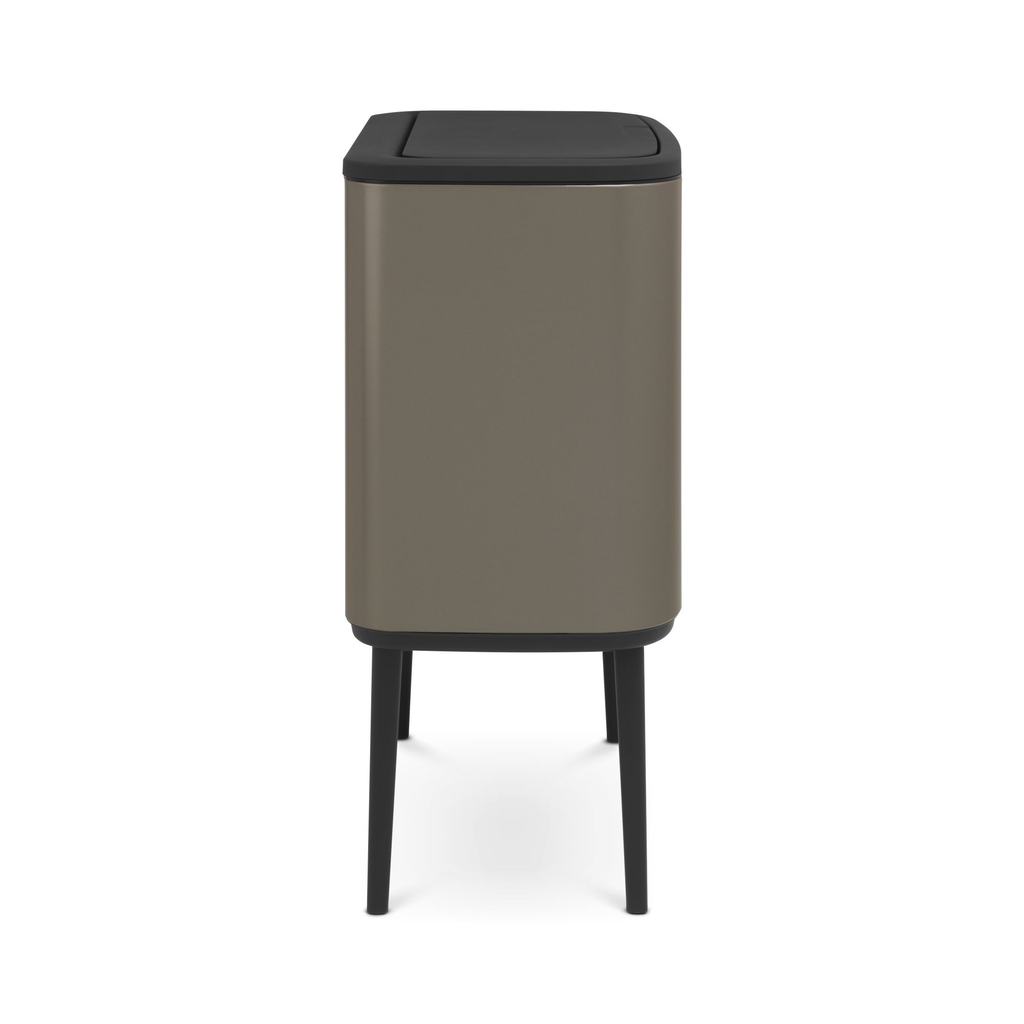 With a capacity of 33 litres (3 compartments of 11 litres), Bo Touch Bin is made with a metal structure and removable plastic baskets. Available in 8 elegant and versatile color finishes, the Bo Touch Bin is the ideal accessory for waste separation, thanks to the three internal buckets. It opens with a light touch: the soft-touch opening system will allow you to lift the lid by simply touching it! The adjustable non-slip legs ensure great stability. Compact and space-saving, the Bo Touch Bin fits easily into any corner of the house! A free pack of PerfectFit pouches is included. Designed and made by Brabantia.