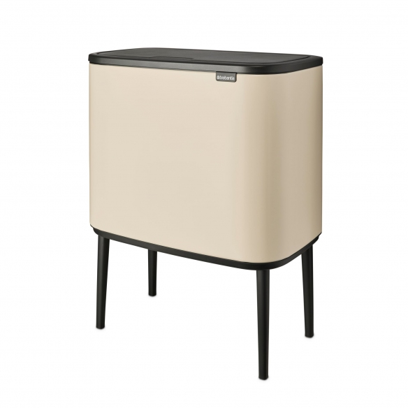 With a capacity of 33 litres (3 compartments of 11 litres), Bo Touch Bin is made with a metal structure and removable plastic baskets. Available in 8 elegant and versatile color finishes, the Bo Touch Bin is the ideal accessory for waste separation, thanks to the three internal buckets. It opens with a light touch: the soft-touch opening system will allow you to lift the lid by simply touching it! The adjustable non-slip legs ensure great stability. Compact and space-saving, the Bo Touch Bin fits easily into any corner of the house! A free pack of PerfectFit pouches is included. Designed and made by Brabantia.