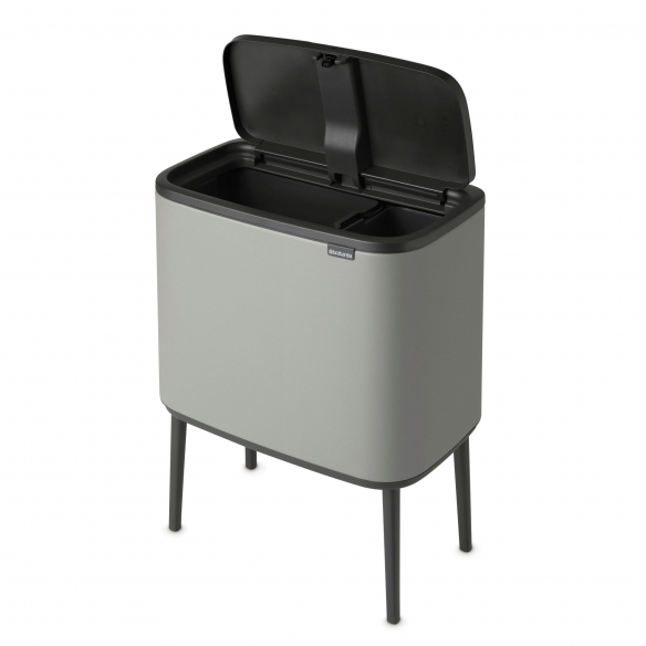 With a capacity of 34 litres (1 compartment of 11 litres and one of 23 litres), Bo Touch Bin is made with a metal structure and removable plastic baskets. Available in 8 elegant and versatile color finishes, the Bo Touch Bin is the ideal accessory for waste separation, thanks to the three internal buckets. It opens with a light touch: the soft-touch opening system will allow you to lift the lid by simply touching it! The adjustable non-slip legs ensure great stability. Compact and space-saving, the Bo Touch Bin fits easily into any corner of the house! A free pack of PerfectFit pouches is included. Designed and made by Brabantia.