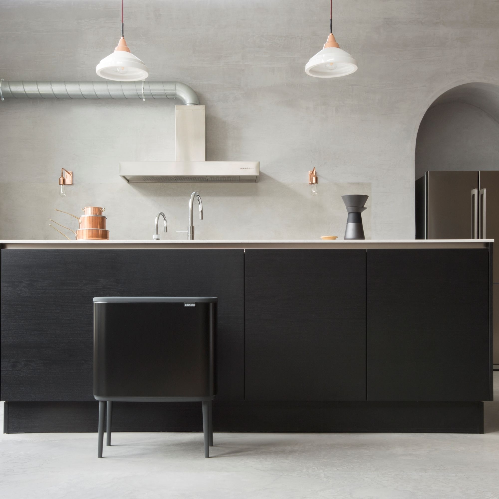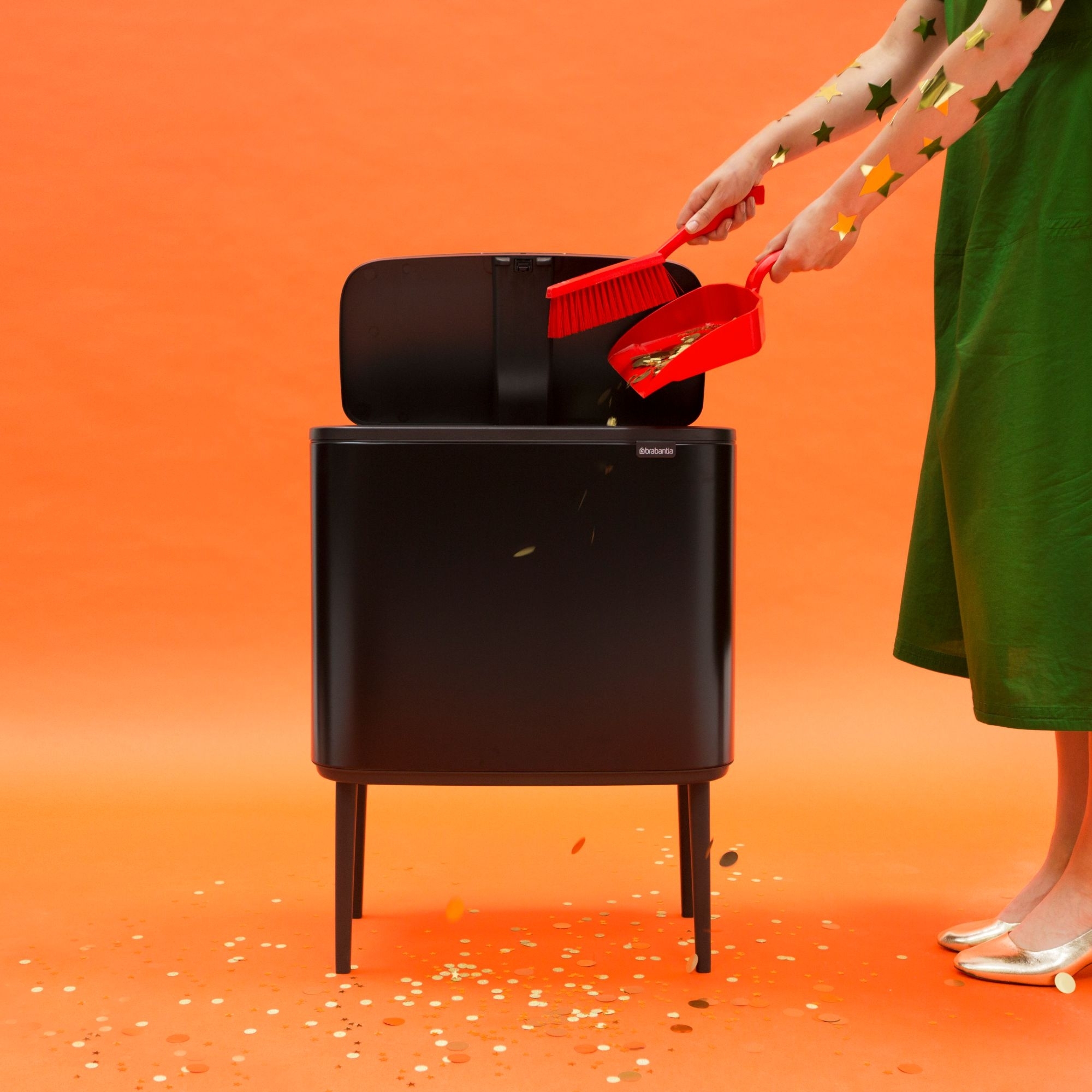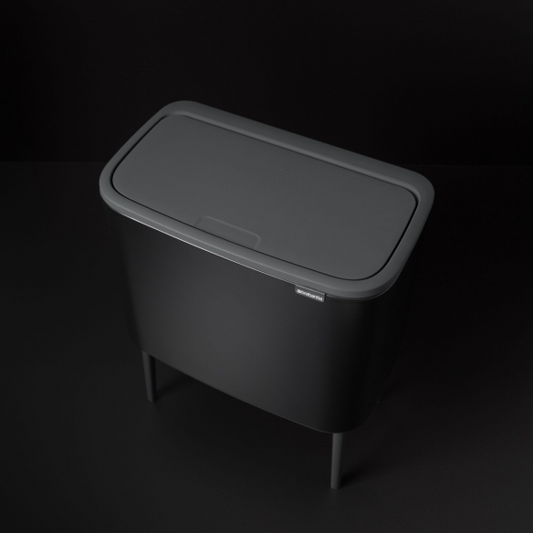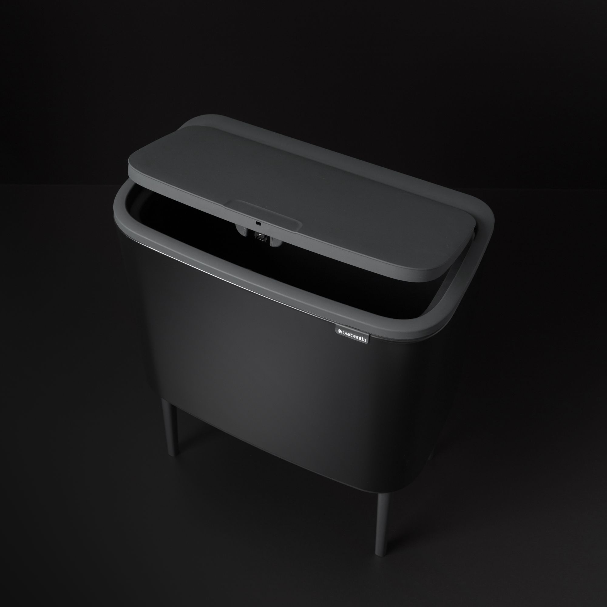 With a capacity of 34 litres (1 compartment of 11 litres and one of 23 litres), Bo Touch Bin is made with a metal structure and removable plastic baskets. Available in 8 elegant and versatile color finishes, the Bo Touch Bin is the ideal accessory for waste separation, thanks to the three internal buckets. It opens with a light touch: the soft-touch opening system will allow you to lift the lid by simply touching it! The adjustable non-slip legs ensure great stability. Compact and space-saving, the Bo Touch Bin fits easily into any corner of the house! A free pack of PerfectFit pouches is included. Designed and made by Brabantia.