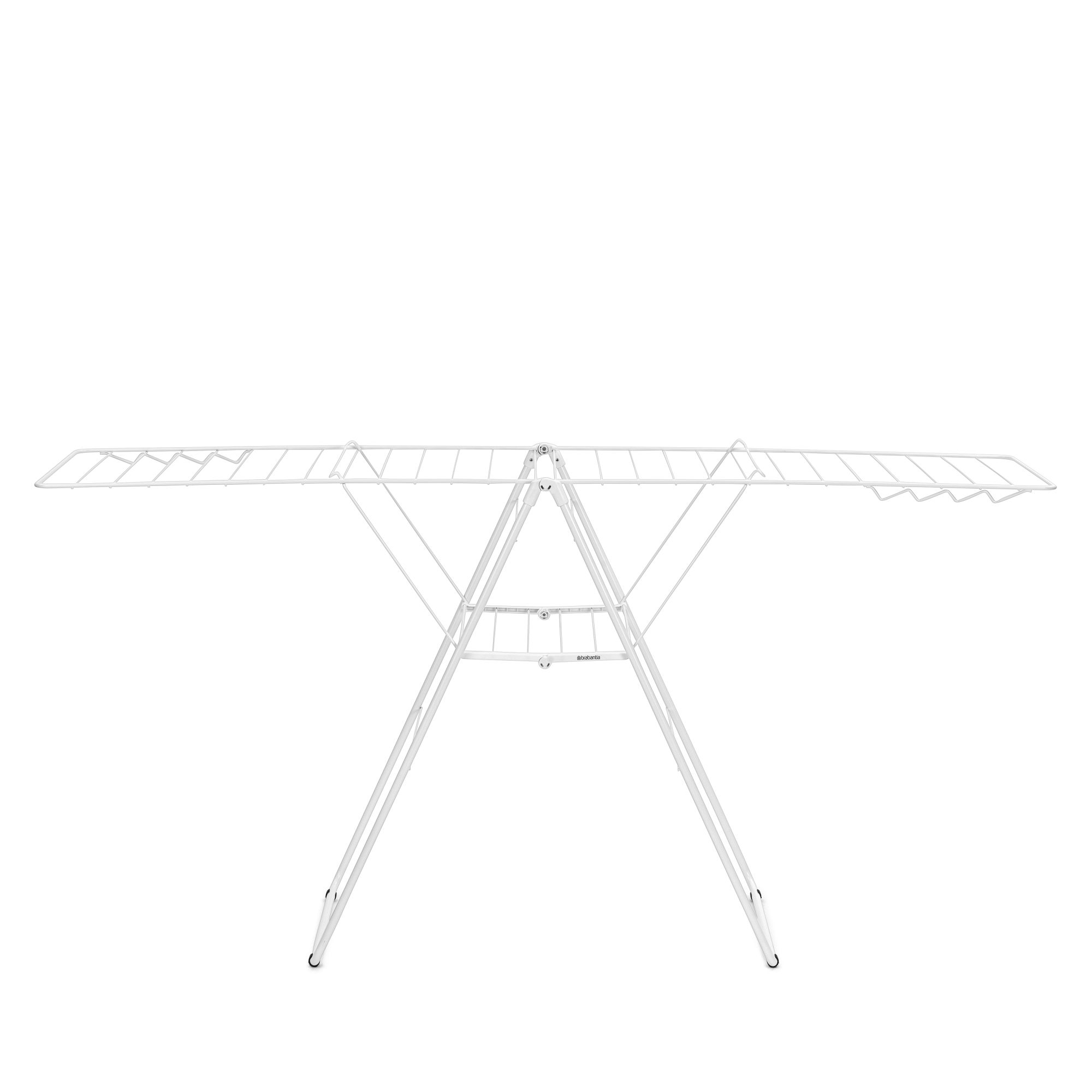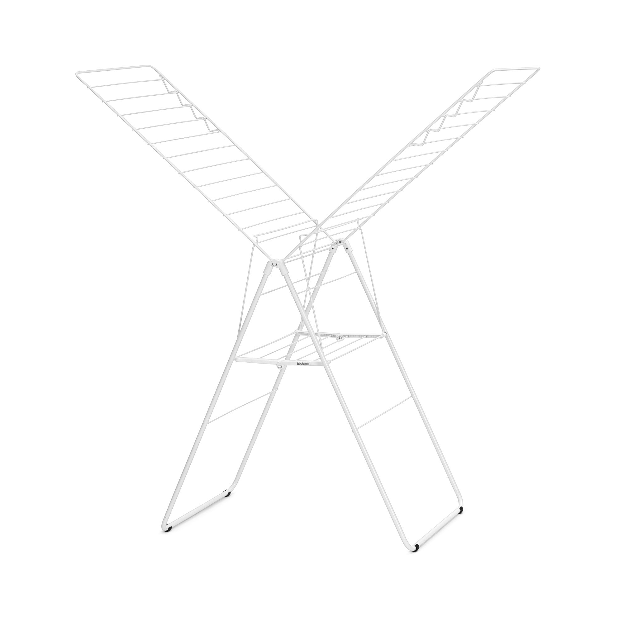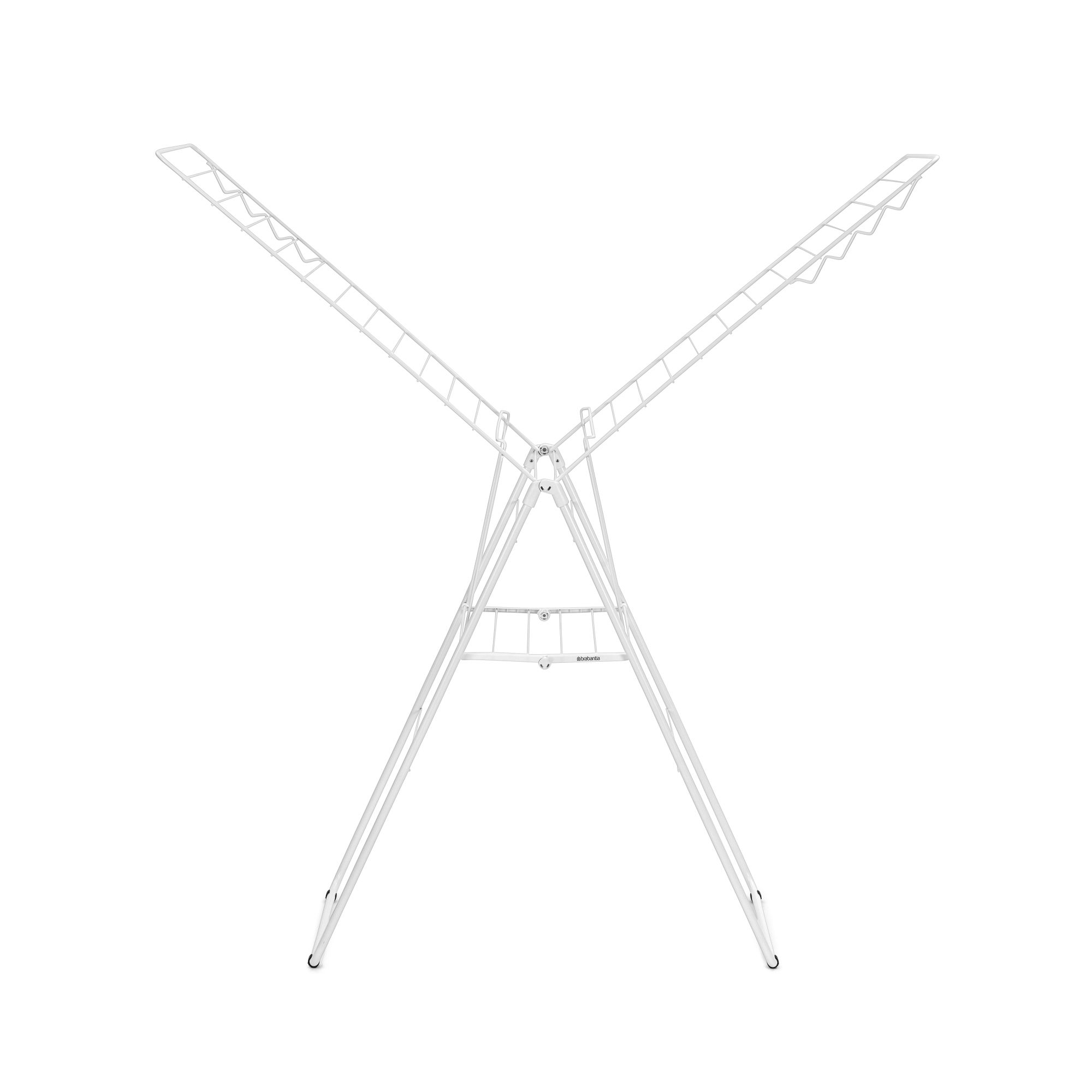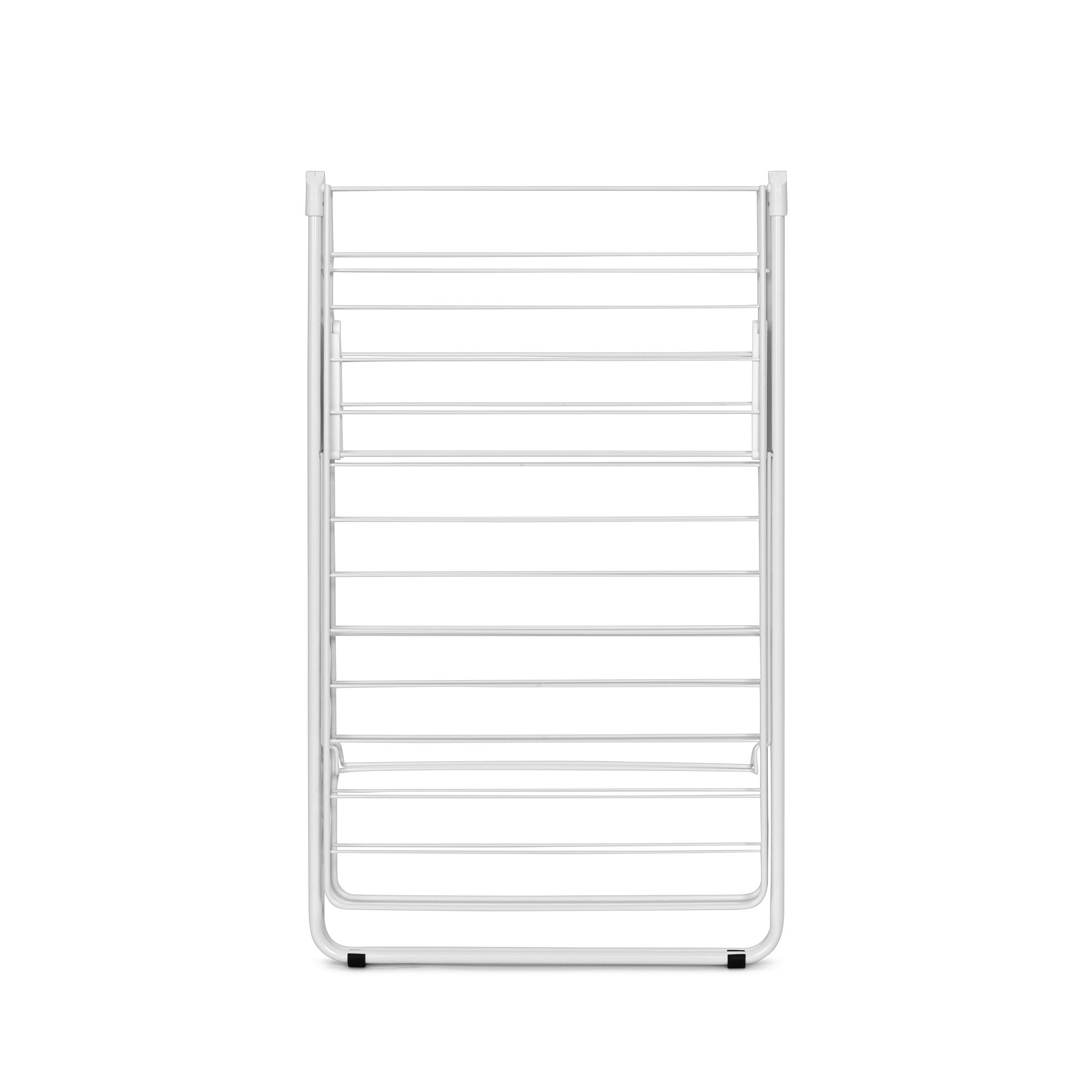 Clothesline from the HangOn collection, 25 meters long, made of resistant metal. Available in 3 color finishes, HangOn is an essential accessory in your home: it is light, practical, compact and uses space in an intelligent way! It can hold up to 3 loads of laundry and the height of the wings is adjustable! The dimensions remain contained, both when folded and when closed. The sturdy protective feet prevent damage to the floor and ensure great stability. The drying rack par excellence! Designed and made by Brabantia.