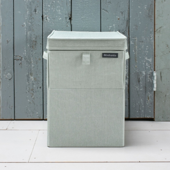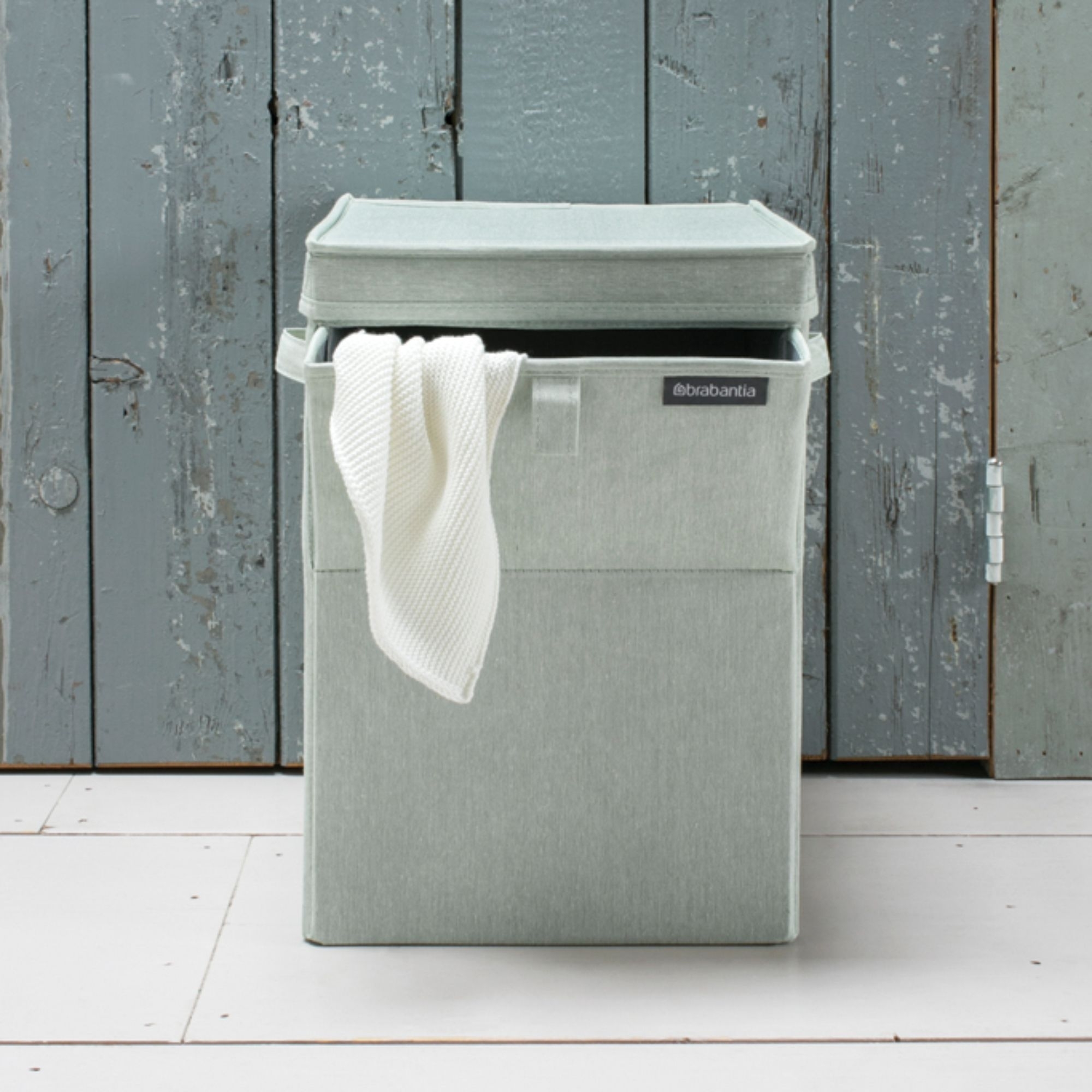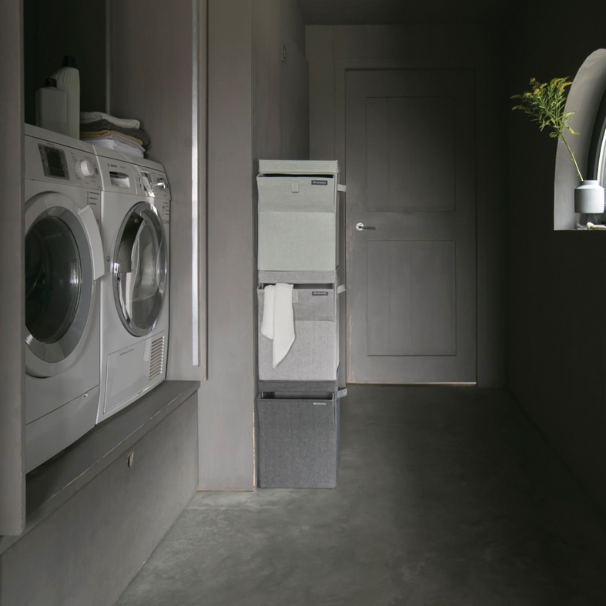 Stackable laundry basket made of fabric. It is the perfect space saver, as it is stackable, but it is also very large to carry a load of laundry, with a capacity of 35 liters. It is excellent for separating laundry and is easy to fill and empty, thanks to the opening in the front and at the top. The double opening also serves to insert the laundry if the laundry baskets are stacked together. Designed and produced by Brabantia.