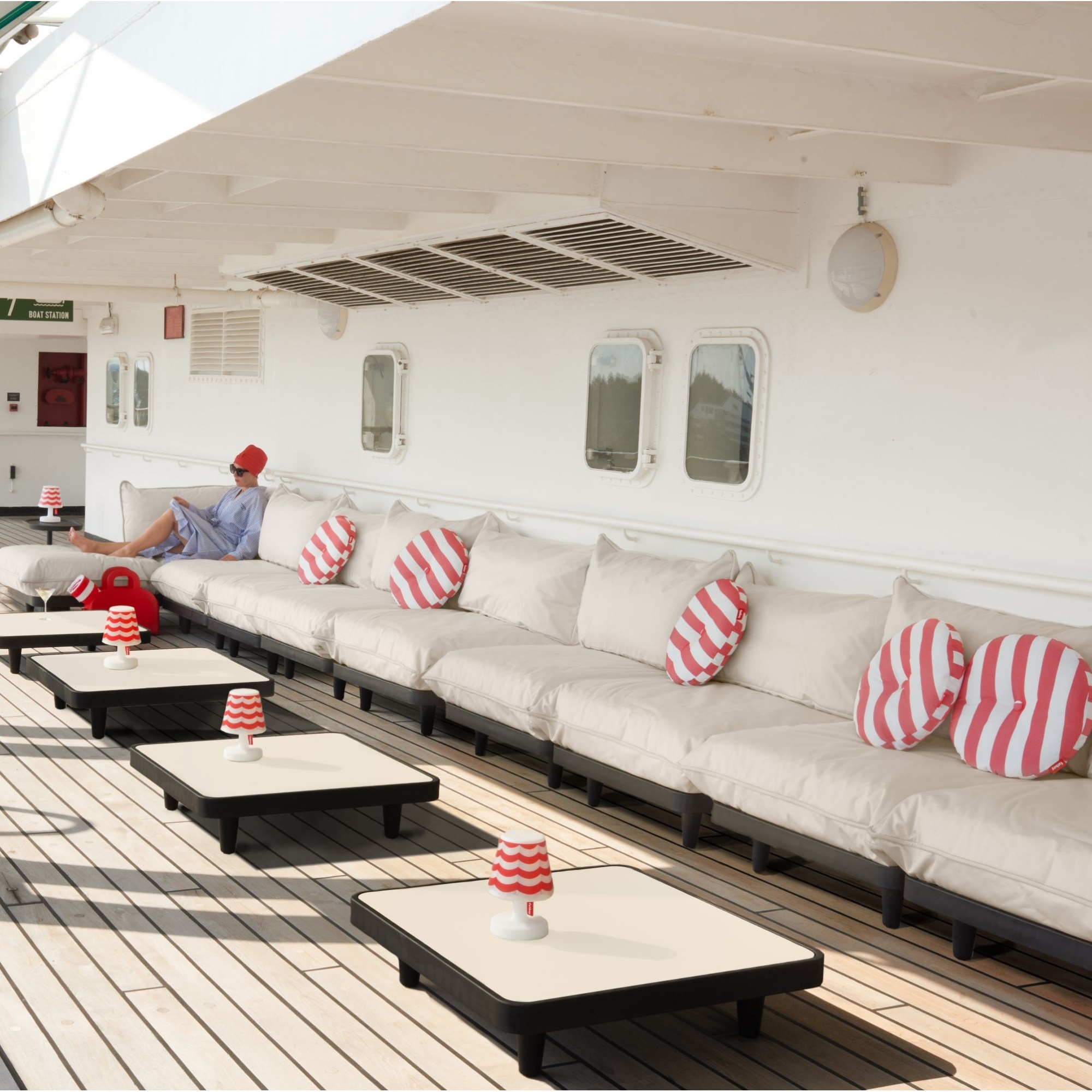 Circle Pillow outdoor cushion made with 100% acrylic or 100% Olefin pillowcases (depending on the colors) and polypropylene padding. Circle Pillow is resistant to UV rays, stains and water as it is an outdoor pillow. It is perfect to be placed in the garden, under a gazebo or on the lawn to create a more romantic atmosphere. Available in different colors and different patterns, so as to meet everyone's tastes. Designed by Fatboy.