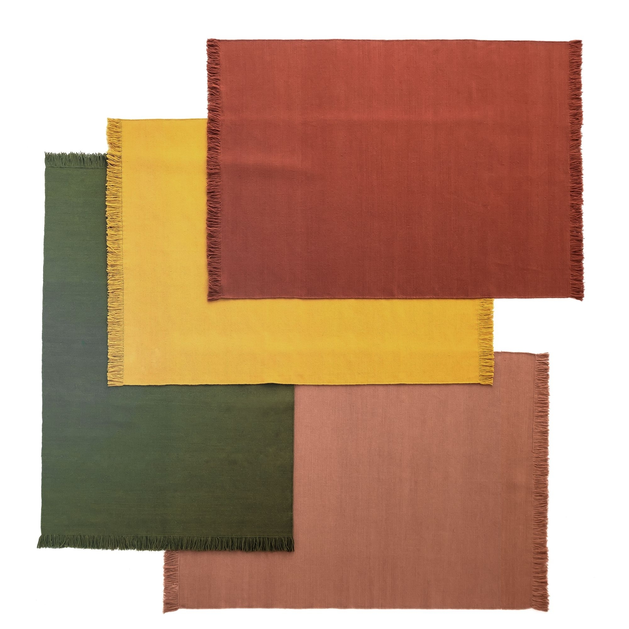 Energy, colour and quality: the Colors rugs, designed by Nani Marquina, are an evocative reinterpretation of the colours of nature and are the first solid colour dhurrie line in the catalogue. Perfectly adaptable to any type of furnishing, from the most classic to the most contemporary, Colors rugs lend themselves to creating magical compositions, especially when combined with Flora rugs, in collaboration with the artist Santi Moix. Manufactured in India, Colors rugs are made of 100% New Zealand wool, using the sophisticated hand-framed technique. Colors are dhurries: they are characterised first and foremost by their flat structure, formed by the crossing of warp and weft threads. It can be executed on both vertical and horizontal frames. The hand-framed technique offers infinite finishes and the use of different materials. With this technique it is possible to create different designs or achieve exclusive and elaborate colours through the use of different densities. These thin and light carpets usually depict geometric patterns, presenting a solid, durable and knotless surface, which makes the dhurries clean and easy to maintain. Within the design configuration, warp and weft are of equal importance, as they are equidistant and both are visible. And you? Are you ready to bring energy and... "colours? Check out all the other fantastic Nanimarquina carpets here on Newpop.it!