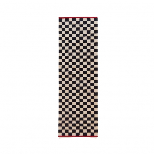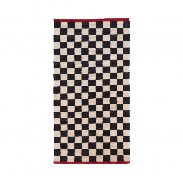 Mélange Pattern rug made of 100% wool from Afghanistan. Mélange Pattern is the rug made with the kilim technique that combines tradition and modernity, as well as craftsmanship and design, and unites past and future. Available in a variety of sizes, the Pattern rug is adorned with a graphic pattern that is complemented by red piping on the edges and a diamond shape that provide exceptional reflections. Designed by Sybilla for Nanimarquina.