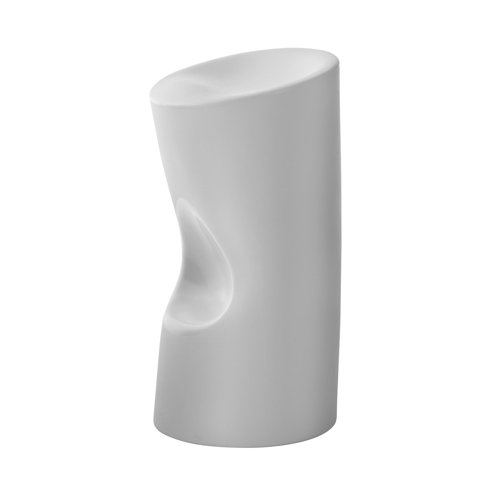 High stool, belonging to the Tokyo-Pop collection, made of polyethylene. Available in white or anthracite grey, the Tokyo-Pop stool is a very versatile piece of furniture: thanks to its shape and elegance it can be placed in any environment and can perform different functions. The particular shape is enhanced by the matte white or anthracite that enrich the decorative value and elegance above. Designed by Tokujin Yoshioka for Driade.