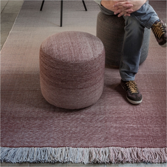 Shade puof made with New Zealand wool upholstery, birch frame and polyurethane foam padding. This pouf features two colorful variations that intertwine: one vertical and one horizontal. These colors are in harmony with six transitional shades that allow you to create this beautiful gradient effect. The surface presents a pleasant feeling of tranquility and well-being enhanced by the vibration of the colors. Designed by Begüm Cana Özgür for Nanimarquina.