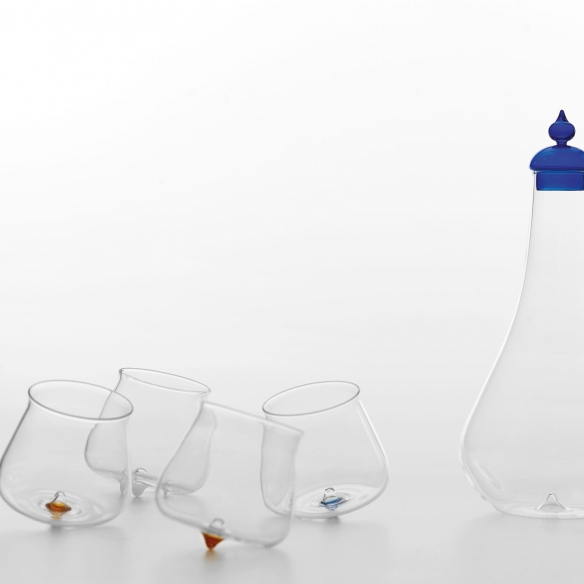 Inspired by traditional games, full of memory and nostalgia, Pirolo is a collection of glasses and bottles in borosilicate glass. Designed by Federico De Majo for the Zafferano brand, the Pirolo line stands out for its very particular design and the extraordinary quality and preciousness of the materials. The shape of the glass is inspired by the spinning top: a small protruding element on the bottom allows it to rotate on itself and to rest obliquely on the table. The bottles, on the other hand, have an evocative teardrop shape and are fitted with special stoppers inspired by the silhouettes of chess pieces. All pieces of the Pirolo line are made of handcrafted borosilicate glass, an extremely refined material known for its qualities of resistance to temperature changes and its low coefficient of expansion. And what about you? Are you ready to relive happy childhood memories? Choose the Pirolo collection! Browse the other fantastic products signed by Zafferano here, on Newpop.it!