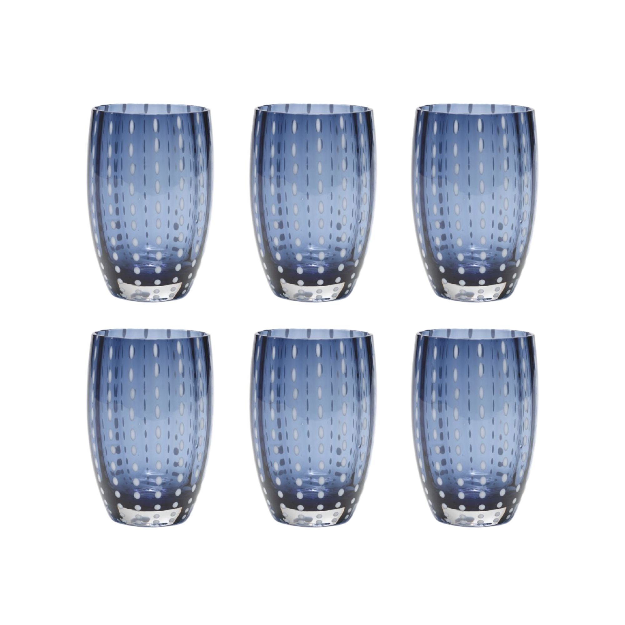 6 glasses with 32 cl capacity, belonging to Perle collection, made of handmade borosilicate glass. Available in 14 different colors, Perle glasses stand out for their exclusive design and high quality materials. Pearls are present on the entire surface of the glass, giving additional elegance and sophistication. The perfect glasses to add a touch of liveliness to the table! Designed by Federico De Majo for Zafferano.