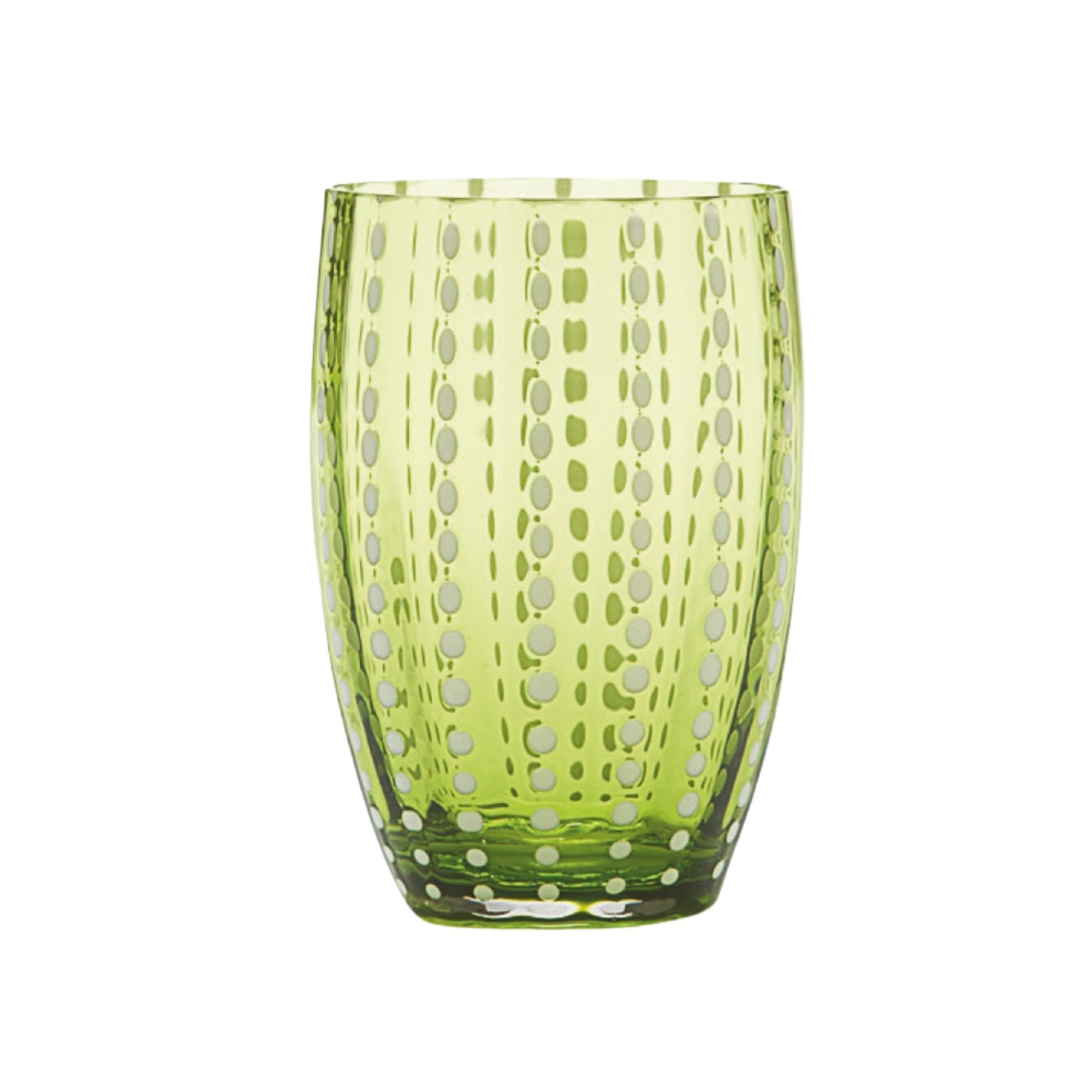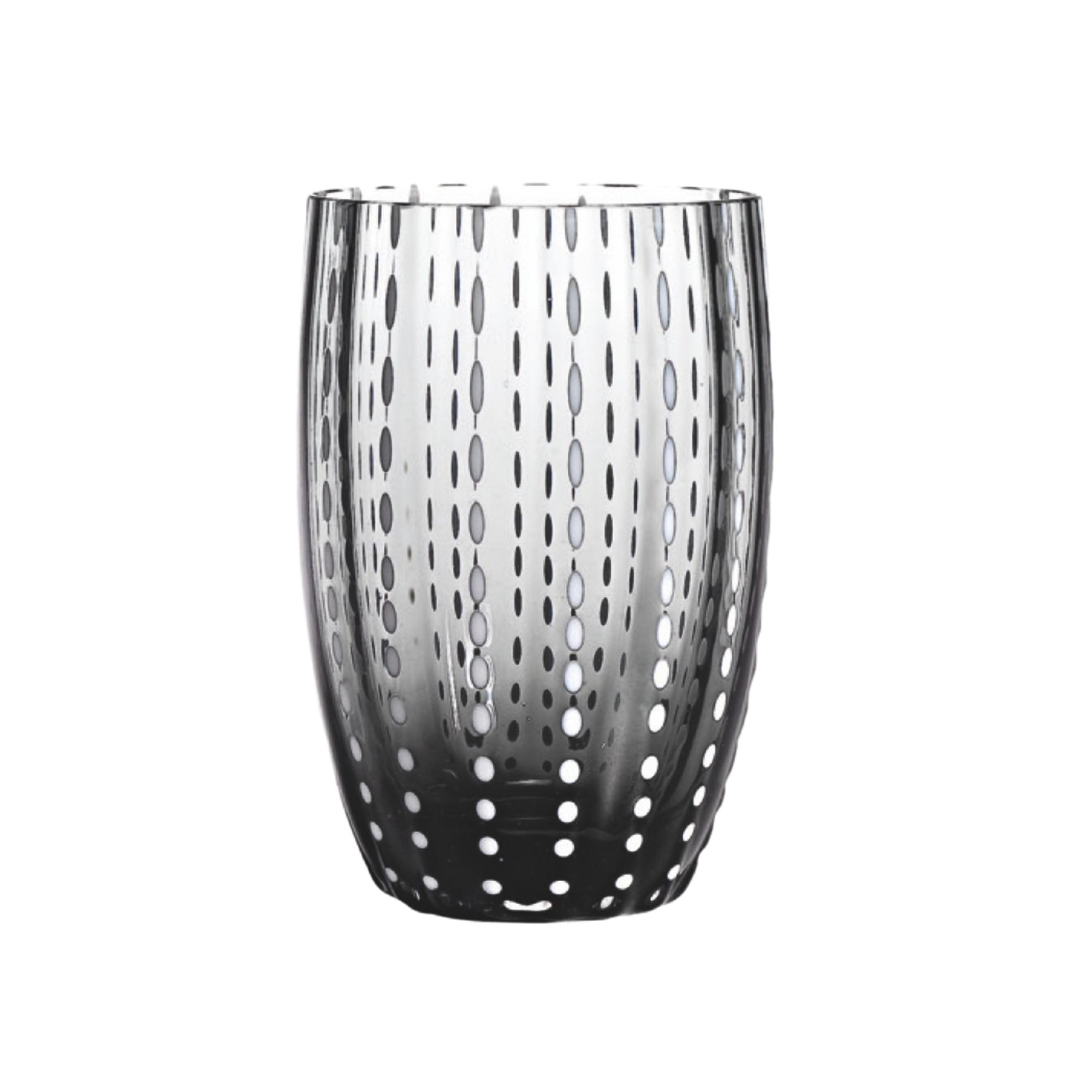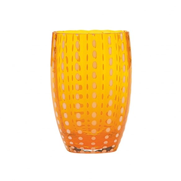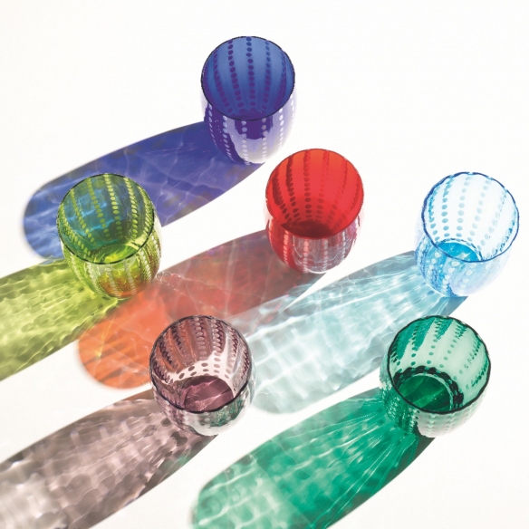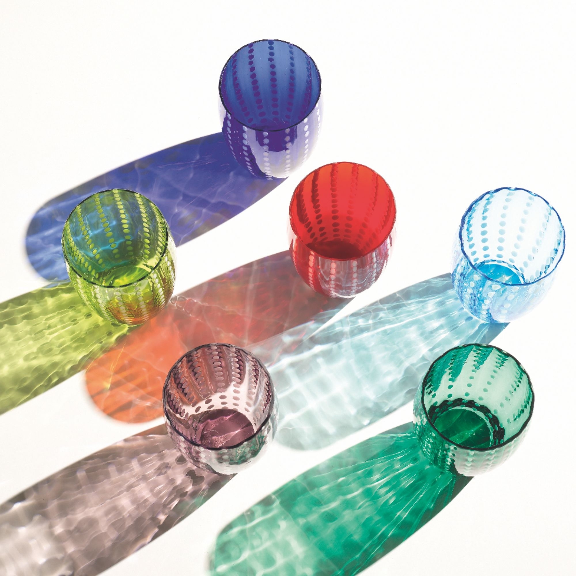 6 glasses with 32 cl capacity, belonging to Perle collection, made of handmade borosilicate glass. Available in 2 different color combinations, Perle glasses stand out for their exclusive design and high quality materials. Pearls are present on the entire surface of the glass, giving additional elegance and sophistication. The perfect glasses to add a touch of liveliness to the table! Designed by Federico De Majo for Zafferano.