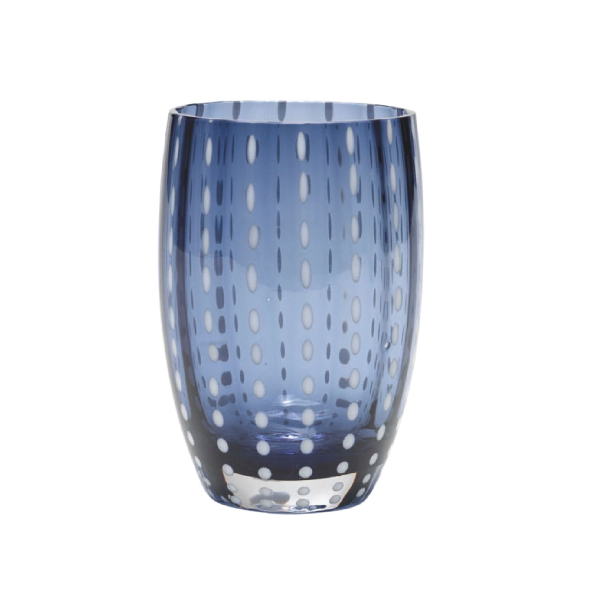 The Perle collection stems from an interest on Zafferano's part in the ancient workings of glass. Specifically, for the realization of this colorful line, the brand uses the technique of the spiral applied and broken, useful for screen printing glass. The Perle line is a series for the table in colored and transparent glass complete with water, soft drink and wine glasses, flutes and cocktail cups, cheerful and colorful carafes, cups and bowls, all objects created to enrich the chromaticism of the decoration on the table. This collection of brightly colored glasses is perfect for adding a glamorous touch to your table. Each piece is decorated with delicate pearls for a luxurious look that gives the entire collection its name. Whether you're serving cocktails, water or any other beverage, this collection is bound to impress. Choose pieces from the Perle collection and browse the other Saffron glass collections here, on Newpop.it!