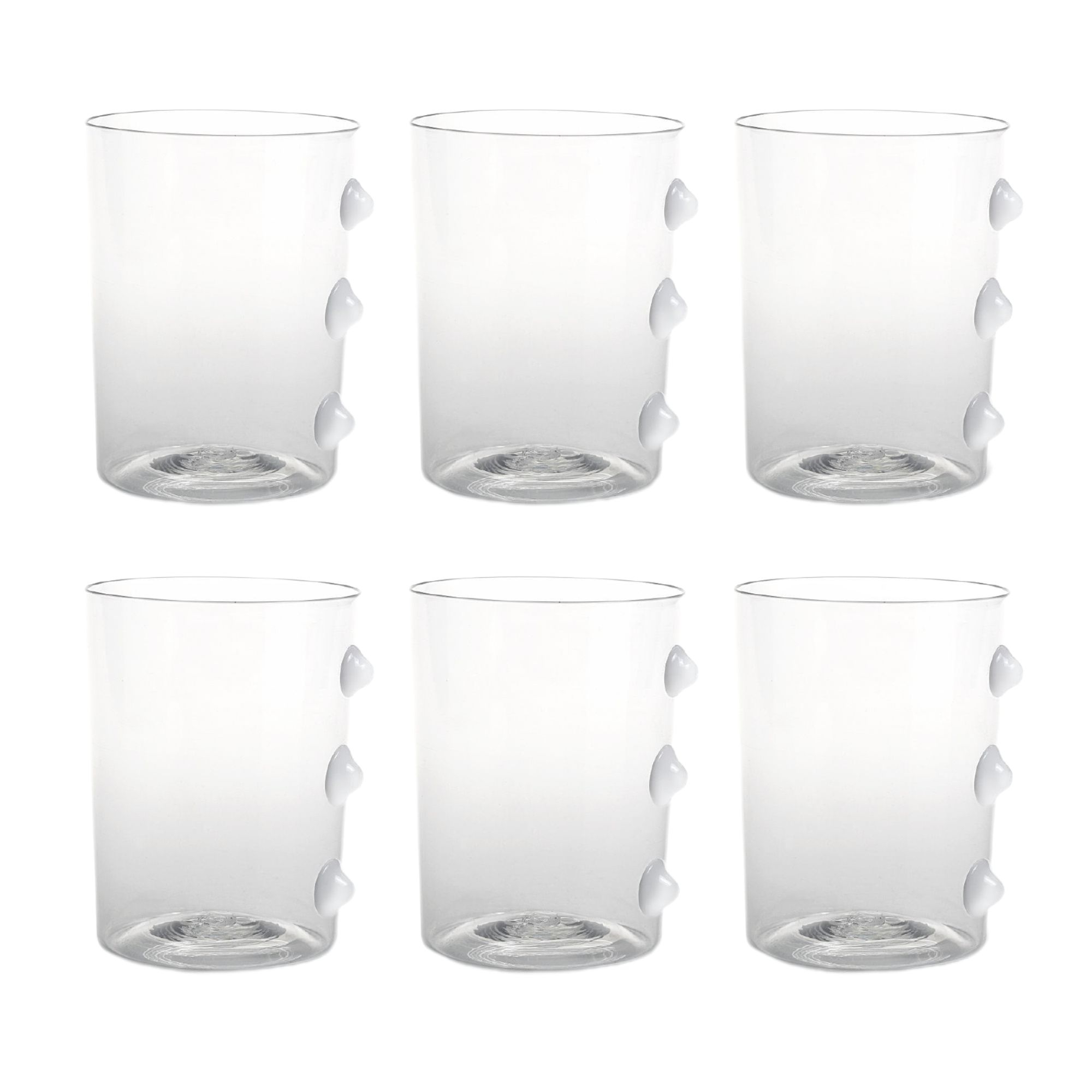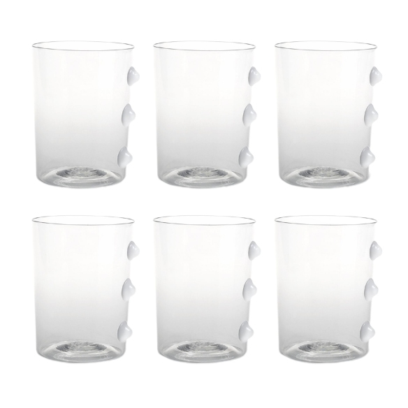 6 glasses of 37 cl, belonging to Petoni collection, made of handmade borosilicate glass. Very particular and suggestive, the Petoni carafe is perfect to add character and personality to your drinks or beverages. The "back" of the carafe is enriched with colorful beads, which makes it look like small colorful dragons. It is available in 6 different color finishes and will make you feel special every time you use it! Designed by Federico De Majo for Zafferano.
