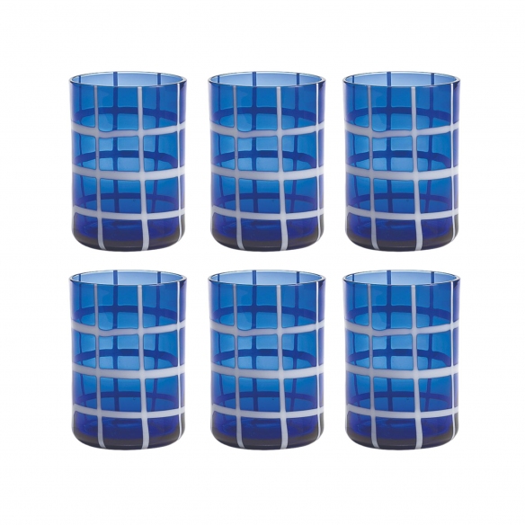 6 glasses of 35 cl, belonging to Twiddle collection, made of hand blown glass. Very elegant in their design and shapes, Twiddle glasses are available in 6 different color finishes and can be easily adapted to any context. The peculiarity of these glasses lies in the motif applied to the surface of the glass, that is, the threads of white paste that make up a pretty network. Designed by Federico De Majo for Zafferano.