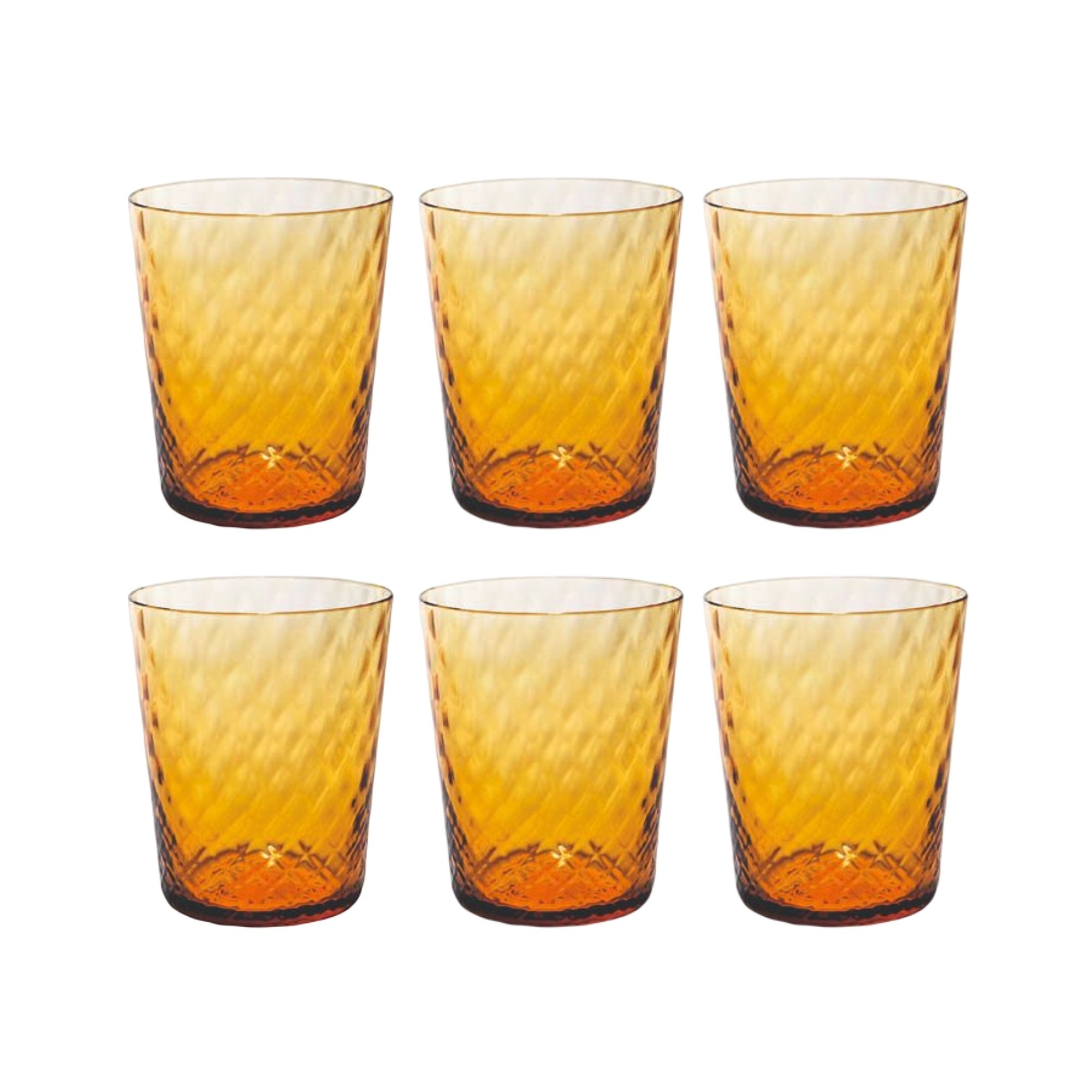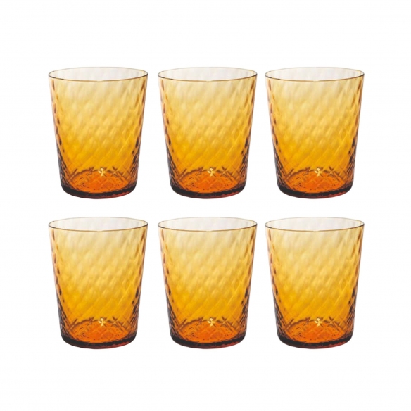 6 glasses of 33 cl, belonging to Veneziano collection, made of hand blown glass. Available in 8 amazing color finishes, these beautiful glasses fit perfectly in any type of set, thanks to the exclusive design linked by bright colors. Designed by Federico De Majo for Zafferano.