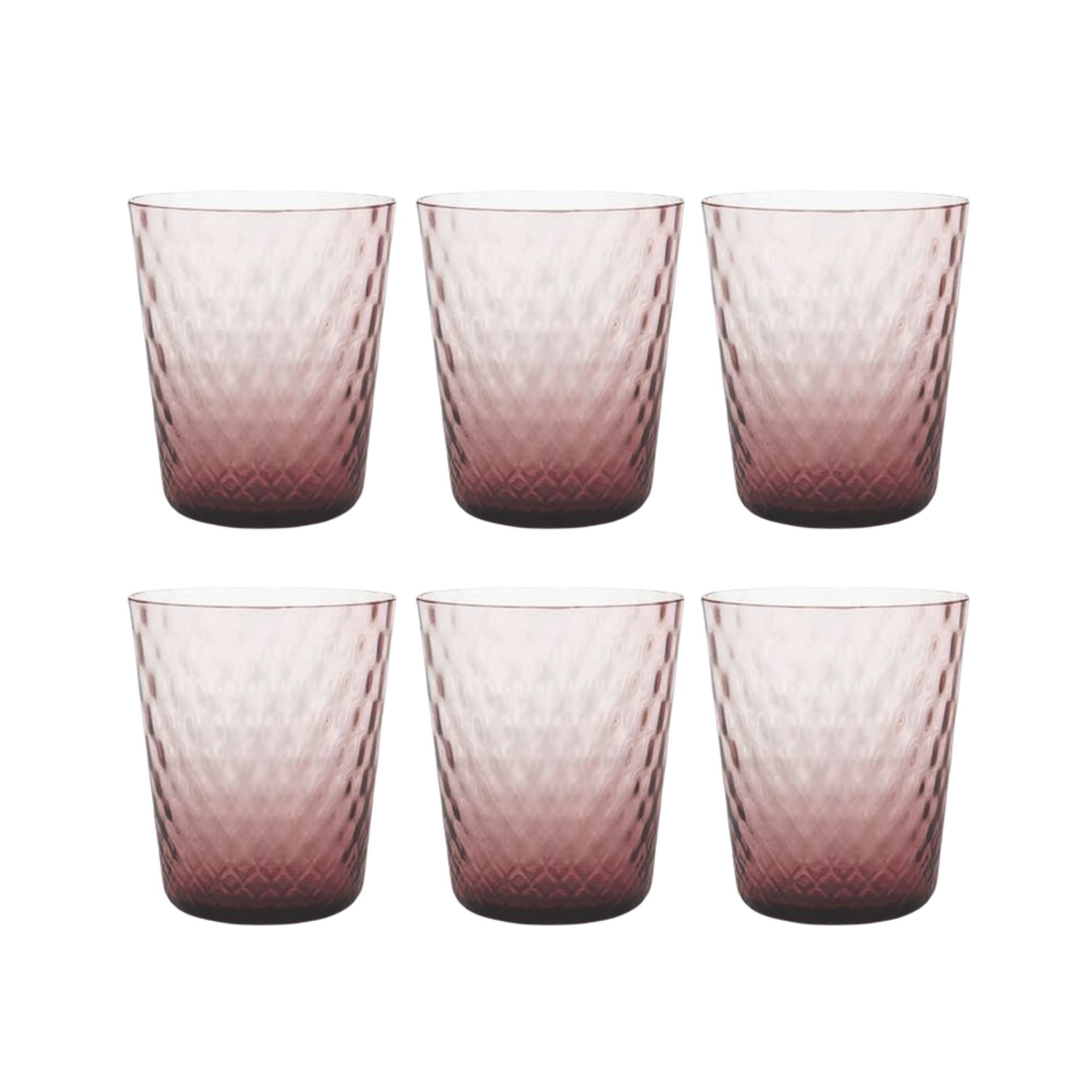 6 glasses of 33 cl, belonging to Veneziano collection, made of hand blown glass. Available in 8 amazing color finishes, these beautiful glasses fit perfectly in any type of set, thanks to the exclusive design linked by bright colors. Designed by Federico De Majo for Zafferano.