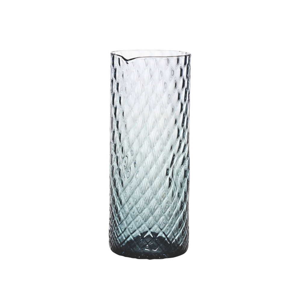 120 cl jug, belonging to the Veneziano collection, made of hand blown and handcrafted glass. This beautiful jug available in 7 beautiful color finishes, can be perfectly matched to the glasses of the same collection, in order to create magic combinations on the table. The glass is expertly crafted, the surface of the jug has a special diamond pattern, capable of creating a fantastic optical effect. Designed by Federico De Majo for Zafferano.