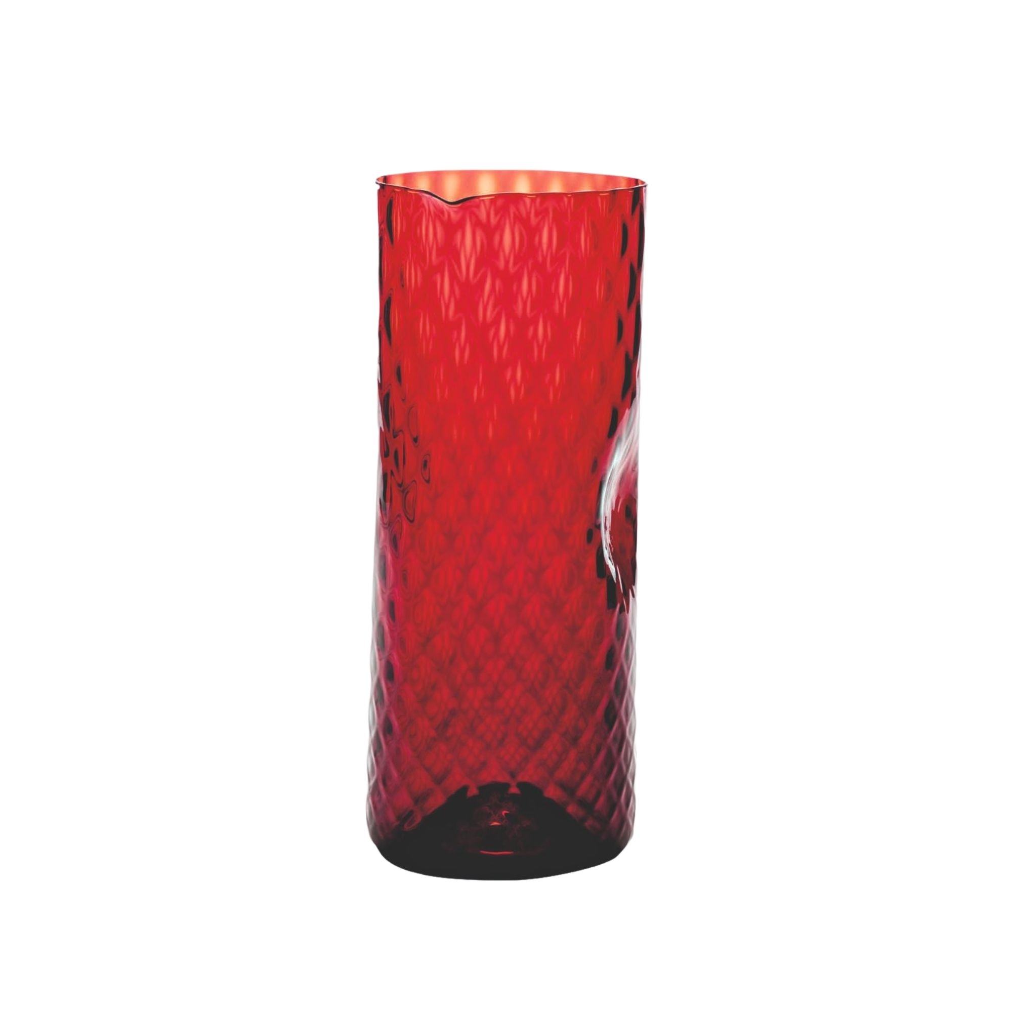 120 cl jug, belonging to the Veneziano collection, made of hand blown and handcrafted glass. This beautiful jug available in 7 beautiful color finishes, can be perfectly matched to the glasses of the same collection, in order to create magic combinations on the table. The glass is expertly crafted, the surface of the jug has a special diamond pattern, capable of creating a fantastic optical effect. Designed by Federico De Majo for Zafferano.