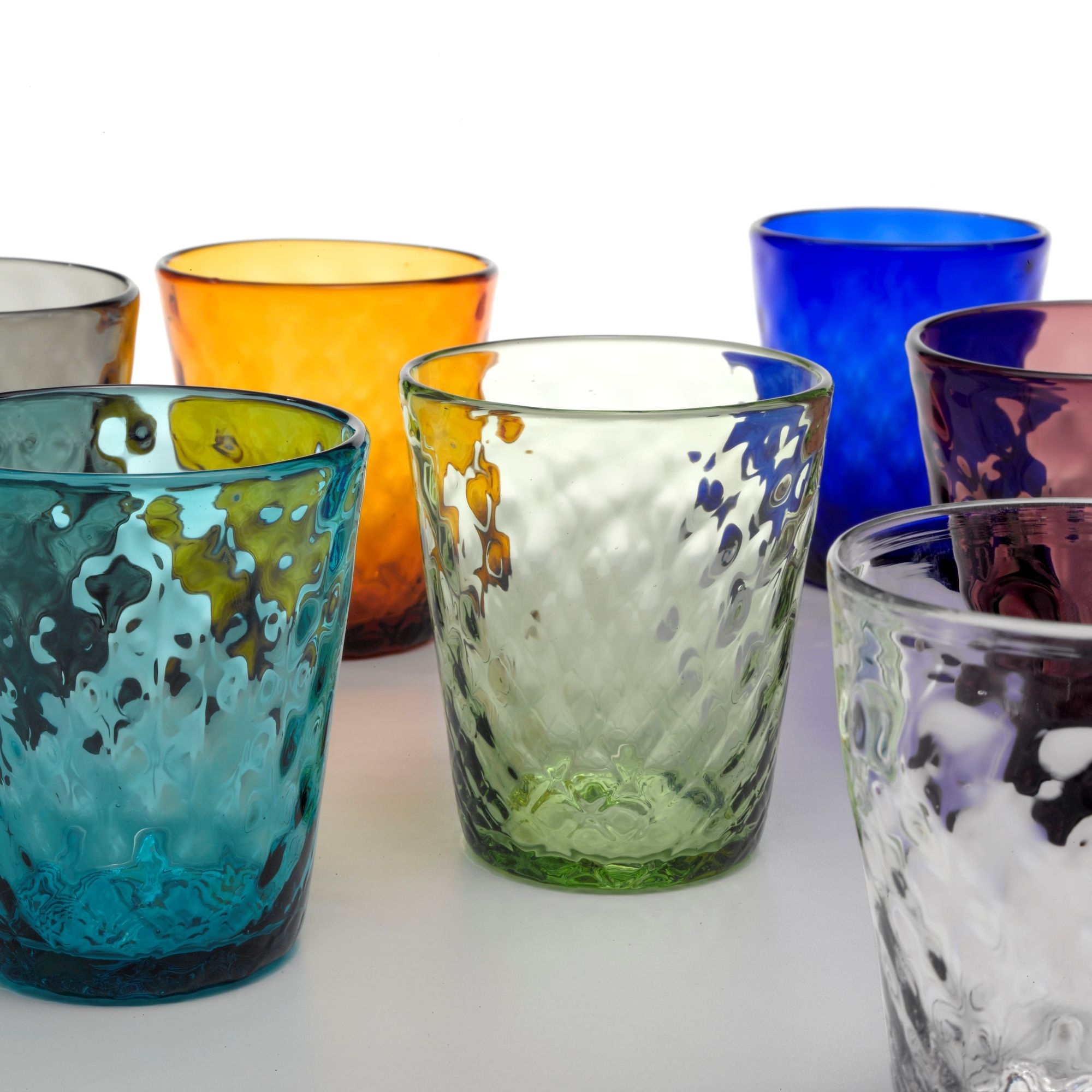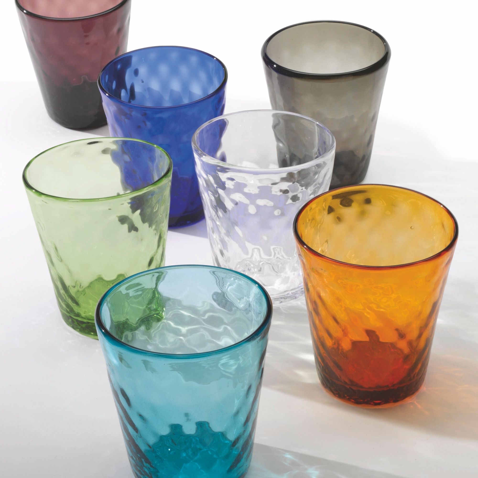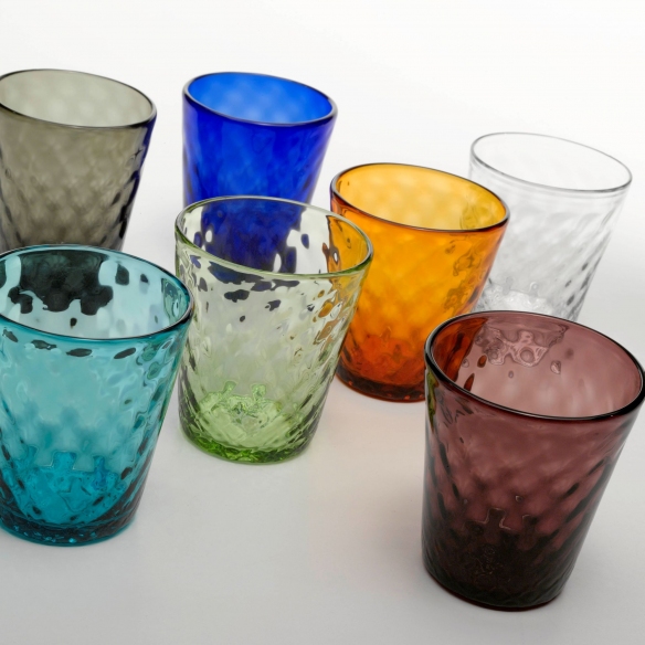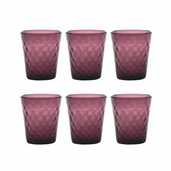 6 glasses of 35 cl, belonging to Balloton collection, made of glass worked by hand with the exclusive "flying hand" technique. Available in 7 different colors, Balloton glasses are characterized by the highest quality of materials and exclusive design. Through a sophisticated technique, the glasses take on particular facets, called "balloton". Ideal for cocktails, water and much more. Designed by Federico De Majo for Zafferano.