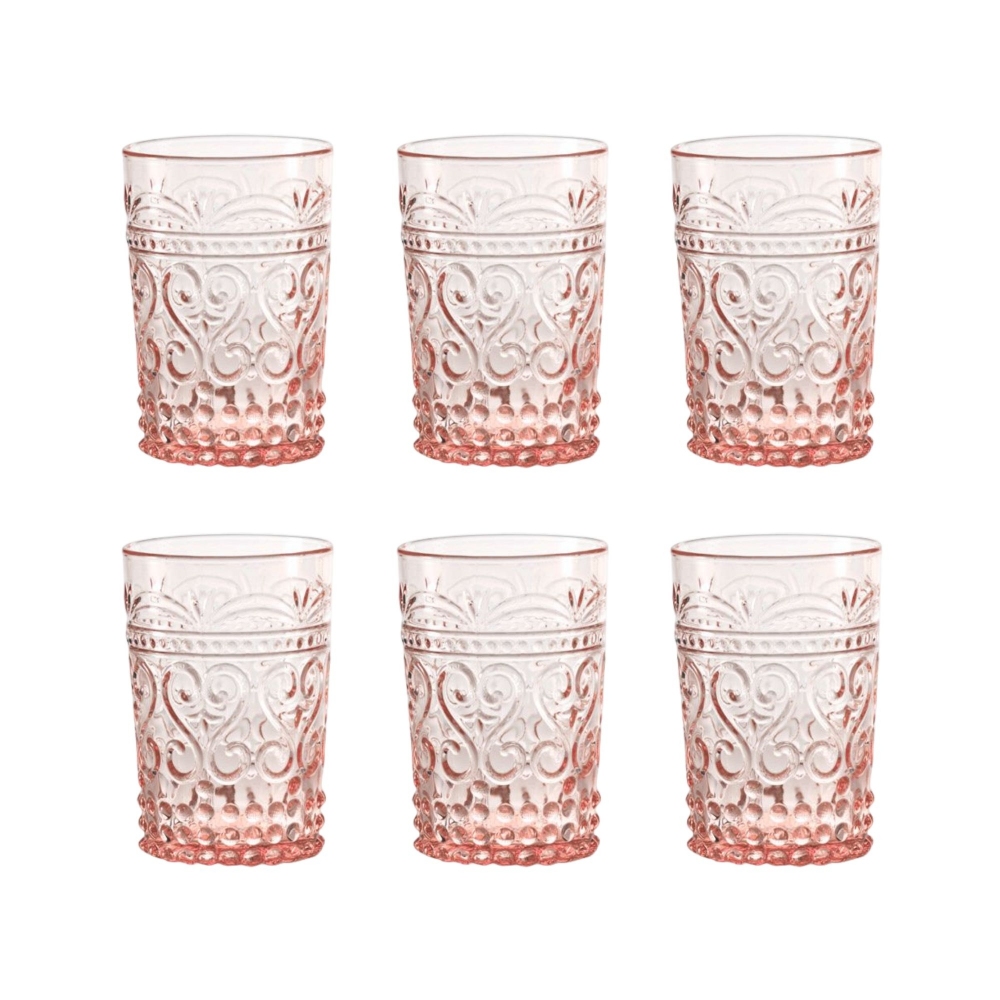 6 glasses of 38 cl, belonging to Provenzale collection, made of mould blown glass and hand made. Available in 8 different colors, Provenzale glasses are striking at first glance for the particular relief decoration on the surface. Perfect for those who prefer a classic style, these beautiful glasses are perfect for cocktails, water and other drinks. Designed by Federico De Majo for Zafferano.