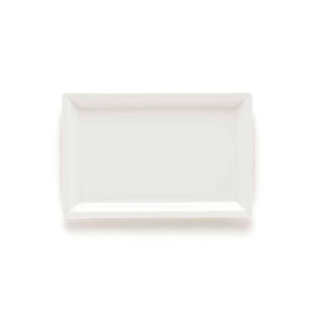 Plate rectangular-shaped 26x18 cm, belonging to Sidney collection, made of fine white porcelain. Ideal for serving sushi, appetizers, snacks or sauces, the rectangular plate Sidney is perfect for creating elegant and functional mise en place. The minimalist design, combined with the highest quality materials, makes it an essential object for your table. Designed and manufactured by Kaleidos.