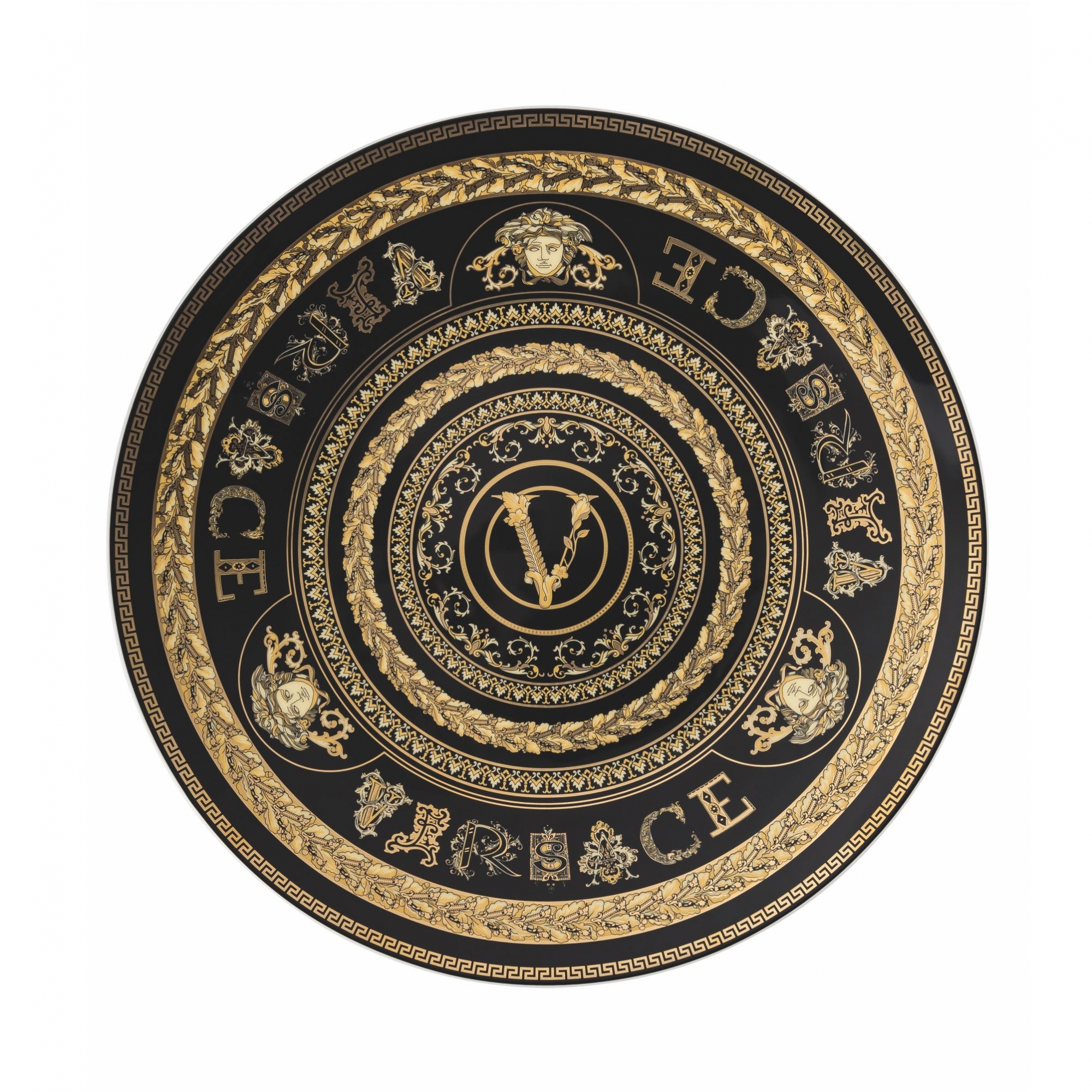Platter with a diameter of 17 cm, belonging to the Virtus Gala collection, made of finest decorated porcelain. Available in 2 beautiful colour finishes, the Virtus Gala platter is enriched with special gold decorations and the central "V," which enhance its decorative value. Perfect for setting tables with an amazing style, the Virtus Gala plate is ideal for lovers of the timeless Versace style! Made by Versace Rosenthal.