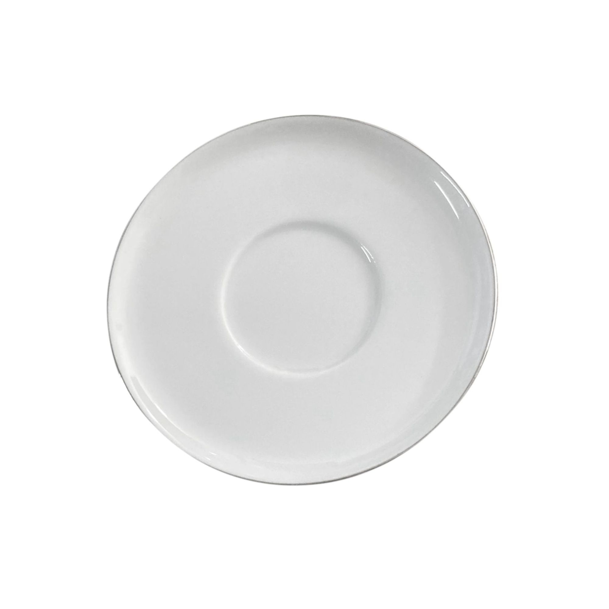 6 tea cup saucers with a diameter of 15 cm, from the Plato collection, made of the finest porcelain. Characterized by a minimalist yet elegant design, the Plato saucers feature an attractive platinum decoration on the edge, enhancing their decorative value. The highest quality of the porcelain makes them extremely resistant and durable, creating a unique item meant to enrich your table for a long time. Made by Arzberg .