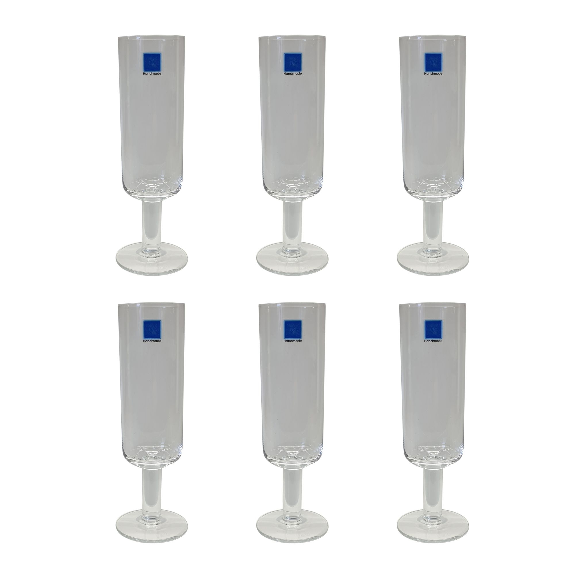 Cenacolo Flûte globets, made of glass. Cenacolo goblets are precious globets that will allow you to savor the bubbles with grace and elegance. The materials are pregiai and the shapes refined, a real treat for the eyes. Made by Home Sweet Home.