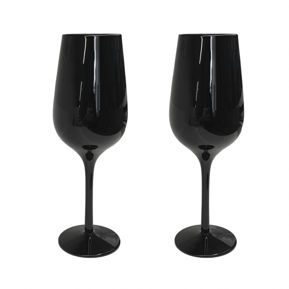 2 calici da degustazione Black, realizzati in vetro soffiato a bocca. Sono dei calici molto eleganti, perfetti per occasioni speciali e ideali per gli amanti del "black soul". Hanno una capacità di 22 cl e la qualità del vetro li rende estremamente resistenti e duraturi. Realizzati da Cristalleria Europa.