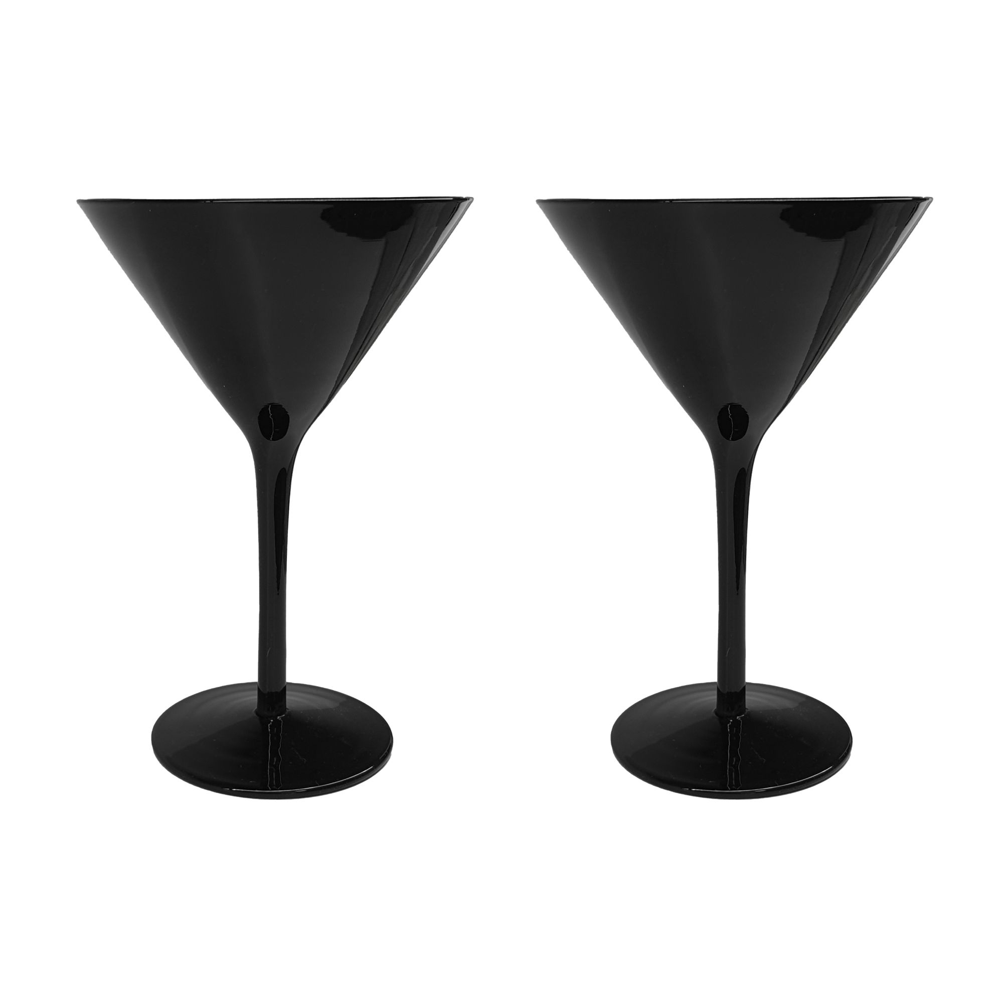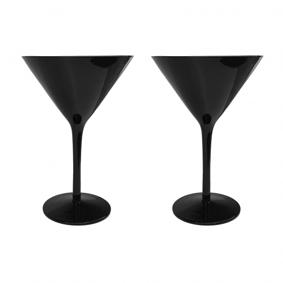 2 calici Martini Black, realizzati in vetro soffiato a bocca. Sono dei calici molto eleganti, perfetti per occasioni speciali e ideali per gli amanti del "black soul". Hanno una capacità di 10 cl e la qualità del vetro li rende estremamente resistenti e duraturi. Realizzati da Cristalleria Europa.