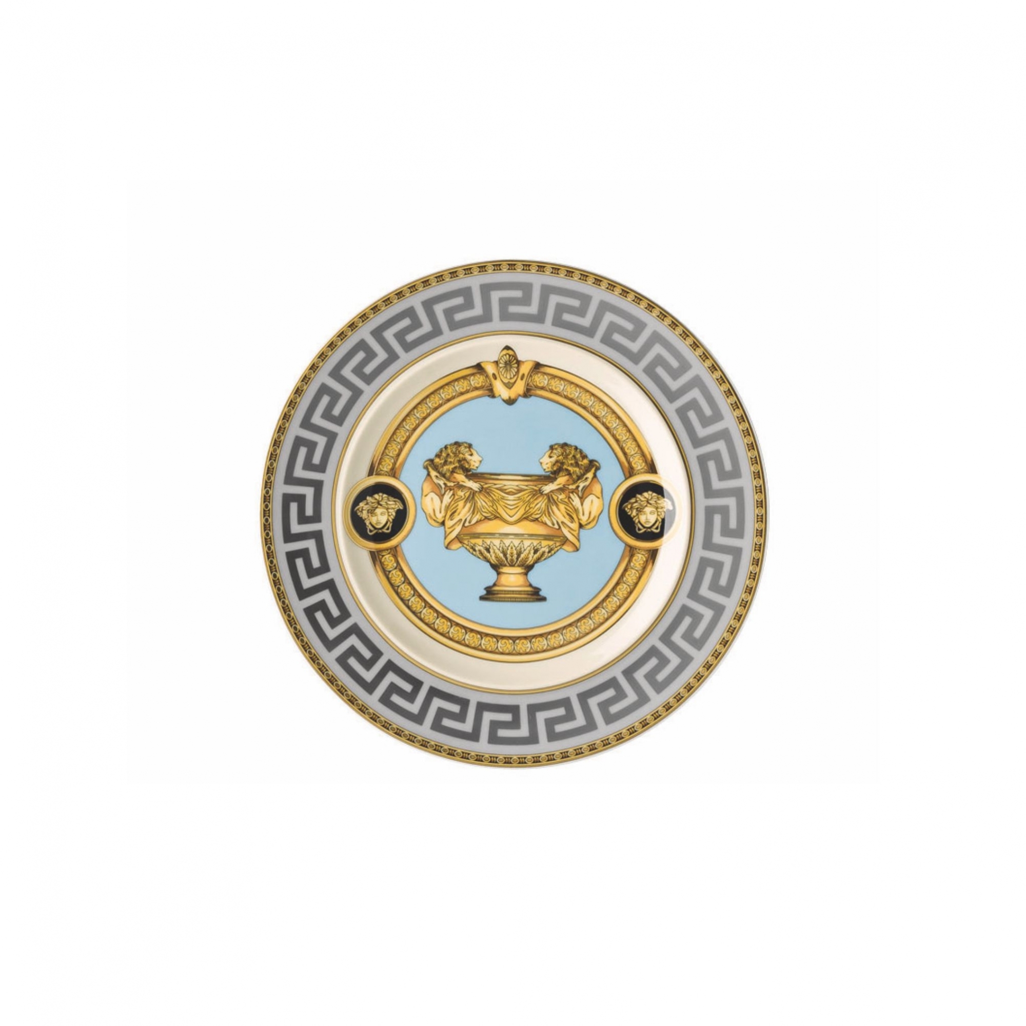 A dinner plate with a diameter of 18 cm, belonging to the Prestige Gala collection, made of the finest decorated porcelain. Enriched with the Prestige Gala Le Bleu 2 decoration, the Prestige Gala dinner plate features precious elements in the Baroque style, highlighted by a fascinating gold colour and accompanied by classical Greek key motifs. The Prestige Gala plate will dominate your table, brilliant, resistant and indestructible! Made by Rosenthal Versace.