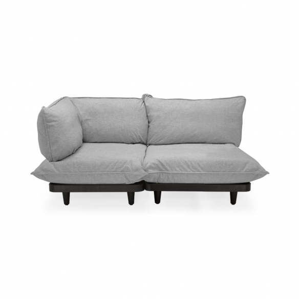 Paletti small sofa composition, made up of pallets in recycled PP TPE materials, steel backrests and cushion padded with foam and covered with Sunbrella® fabric, available in 5 colors. Relax, drink, place objects, lie down: everything is possible with the Paletti sofa! Very resistant both as regards the pallet and the cushions, resistant to UV rays and waterproof, Paletti is designed to "live" outside! Made by Fatboy.