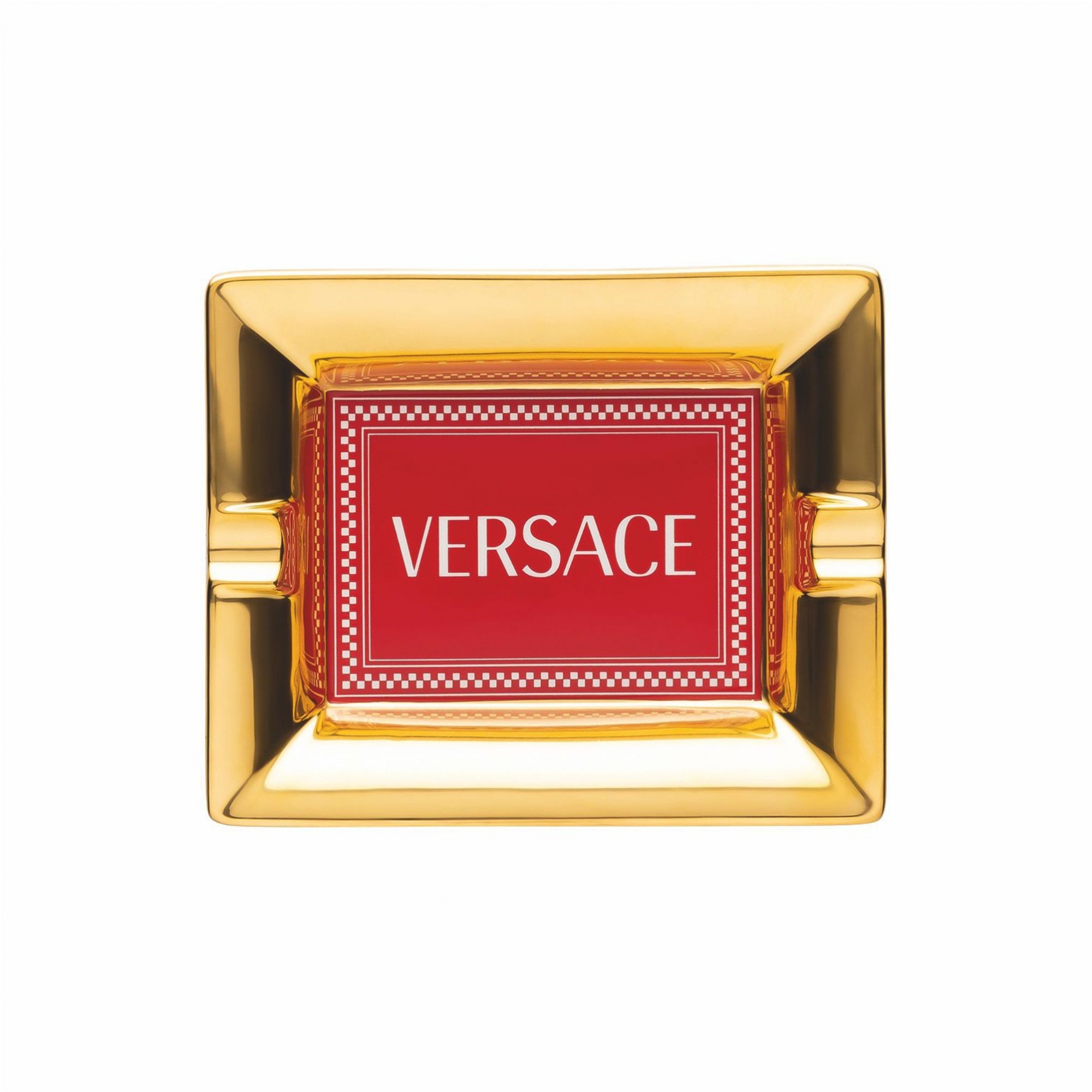 Big ashtray, belonging to the Medusa Rhapsody collection, made of very fine decorated porcelain. Available in 3 elegant color finishes, the Medusa Rhapsody ashtray features the Versace 90s Vintage logo label and gold edge details. It is a beautiful addition to any decor, an icon to be proudly displayed! Made by Versace Rosenthal.