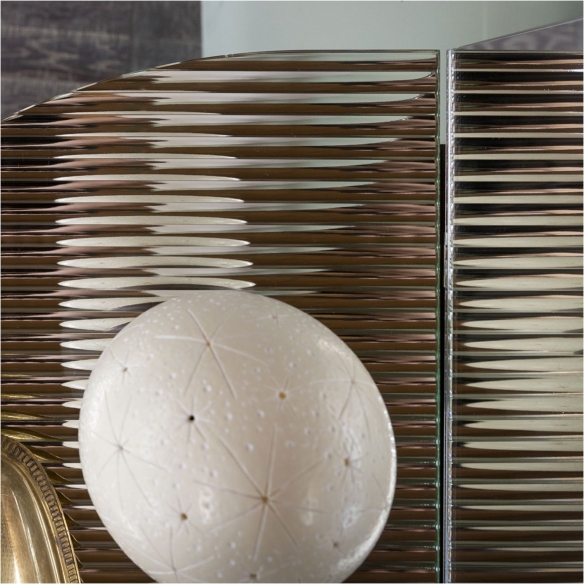 Specchio appartenente alla collezione Brame con piano ribaltabile e struttura in palissandro. Disponibile nelle versioni "ossidato" e "canetè" per quanto riguarda il piano d'appoggio, lo specchio Brame è un oggetto d'arredo dal design esclusivo e polifunzionale: nella zona d'ingresso, come pratica consolle e nella zona notte come elegante specchio. Disegnato da Claudio Bitetti per Mogg.