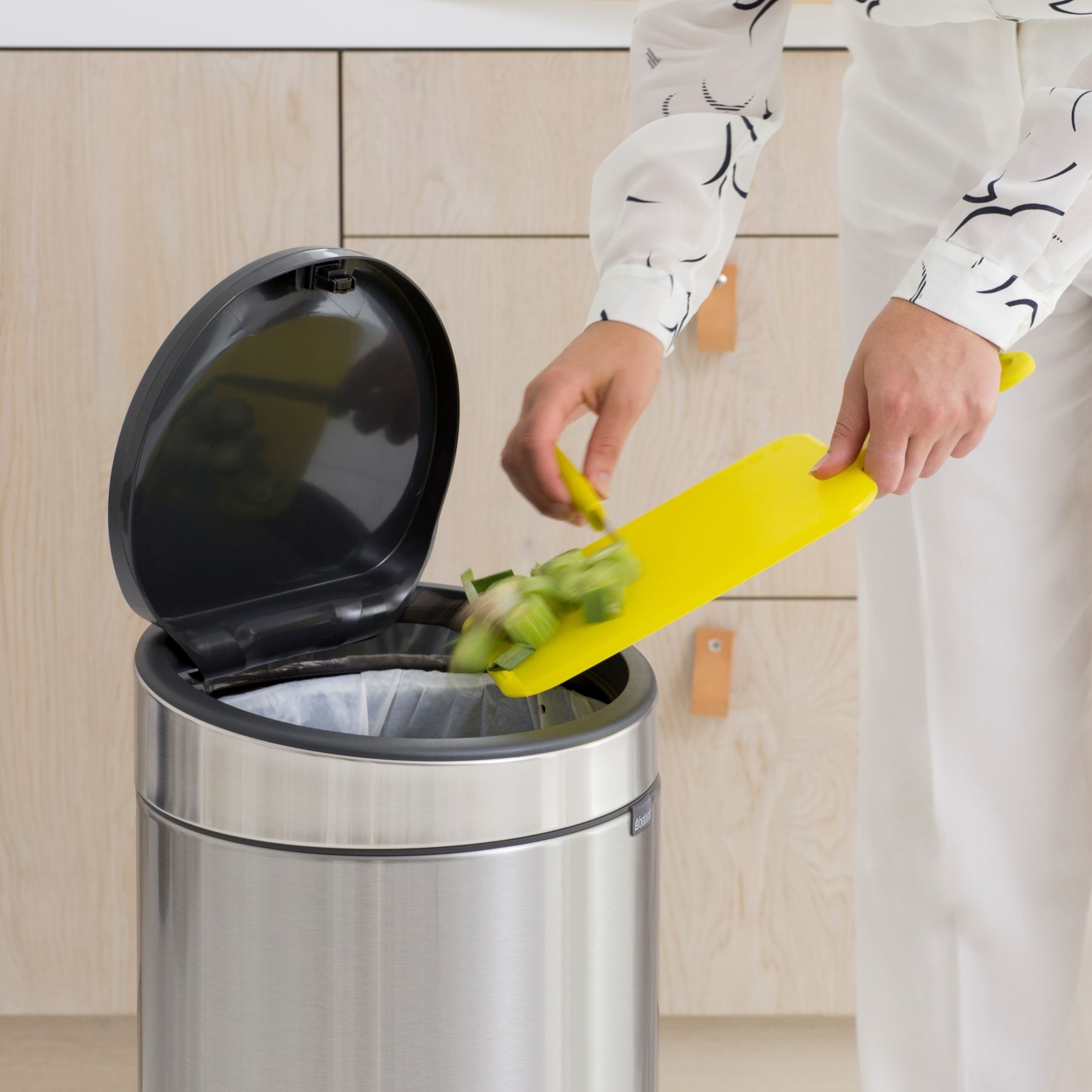 Touch Bin New waste bin with a capacity of 30 liters, made with metal structure and removable plastic baskets. Available in 13 versatile color shades, Touch Bin New is an accessory capable of combining functionality and design in a unique way. It opens with a light touch: the innovative soft-touch system will allow you to lift the lid by simply touching it! It can be placed in any corner of the kitchen, thanks to its compact and space-saving shape! Made by Brabantia.