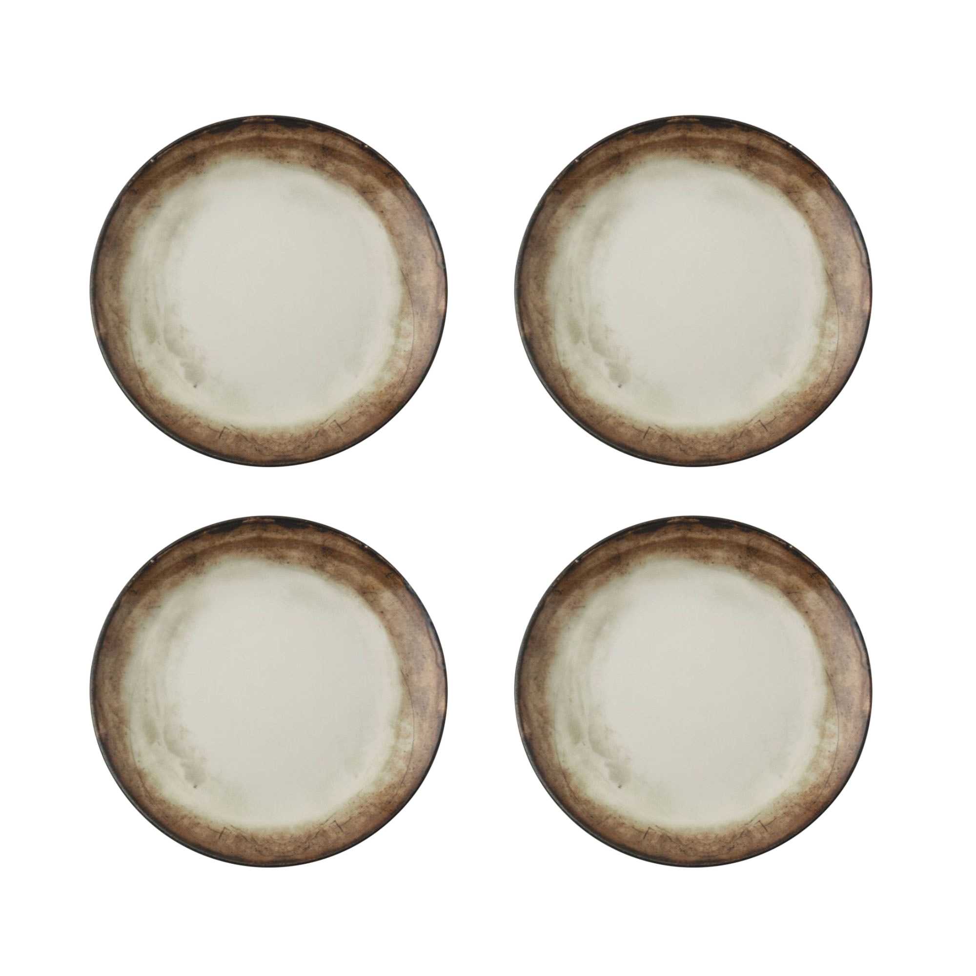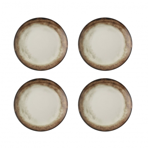 Set of 4 dinner plates with a diameter of 27.5 cm, belonging to the Shade Earth collection, made of fine decorated porcelain. Each plate is characterized by trendy shades, the brownish edge creates a fantastic contrast with the white, generating a pleasant optical effect, deliberately imprecise. Perfect for outdoor or casual-chic locations, Shade Earth plates offer your table style, quality and timeless elegance. These dishes are dishwasher safe. Made by Arthur Krupp.