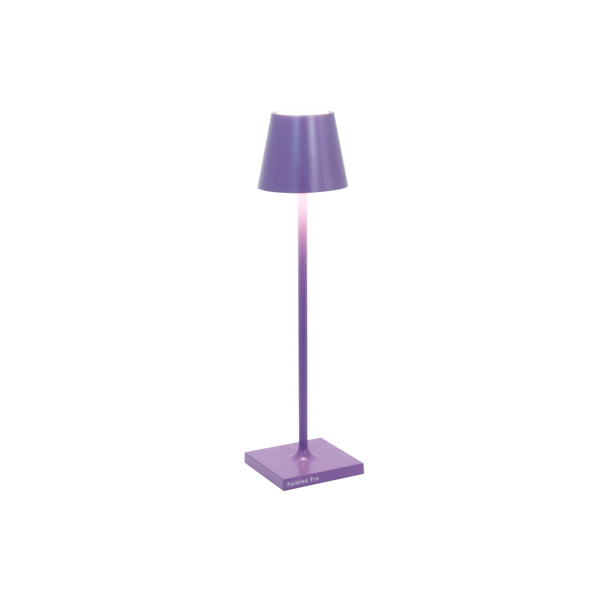 Poldina Pro Micro rechargeable table lamp, made with painted aluminum body and polycarbonate diffuser. Available in 14 color finishes, Poldina Pro Micro is perfect to illuminate any environment with style. It is a "reduced" version compared to the iconic Zafferano lamp, the design, however, remains unchanged. The small size makes it perfect for small spaces and moves easily! It has a rechargeable battery and a LED source that turns on and off using the special touch button on the top of the diffuser. Battery life guaranteed for over 7 hours. Degree of protection IP65 (indoor and outdoor use). Charging base supplied. Made by Zafferano.