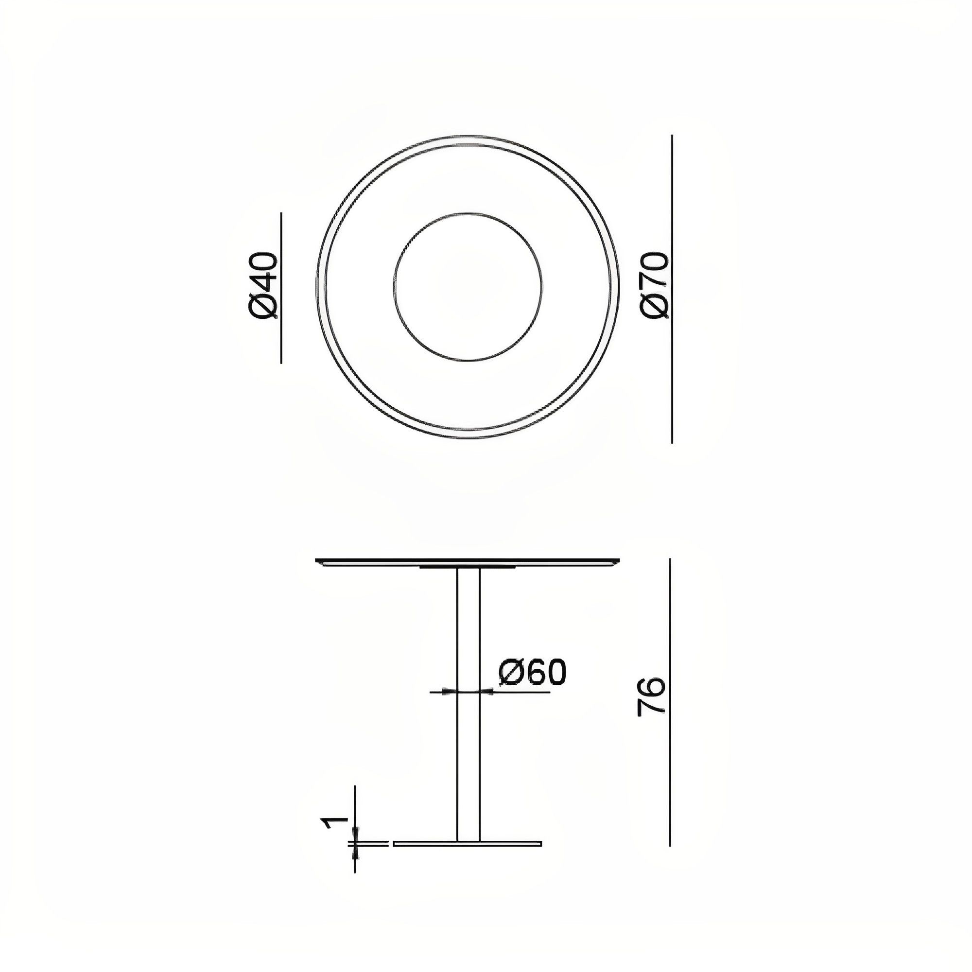 Dimensions: Top diameter 70 cm, Base diameter 40 cm, Height 76 cm